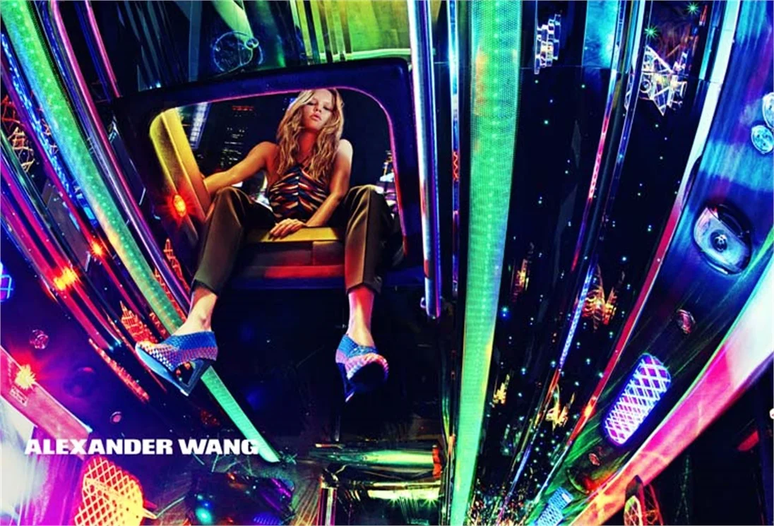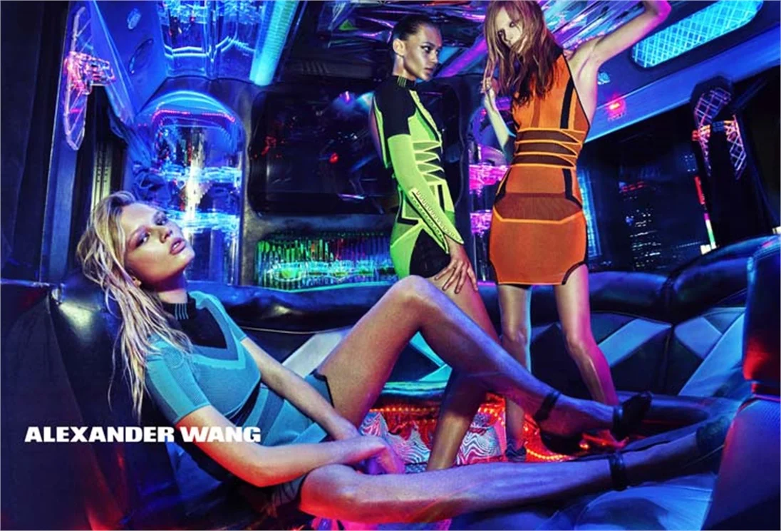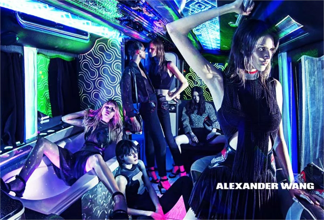 최근 몇 년간 드라마틱 하면서도 강렬한 비주얼과 스토리로 각인된 알렉산더 왕의 이번 캠페인은 마치 미래의 우주선 안에 와 있는 듯한 느낌이 스포티함을 강조한 컬렉션과 완벽한 조화를 이루고 있다. 유선형과 직선으로 이루어진 컬러플한 라이팅들이 모델들의 강렬한 포스와 어울려 3D비주얼을 보고있는 듯한 착각과 함께 예전 네온으로 형광 번짐을 만들던 무도장의 기억이 미래적이면서도 복고적인 느낌으로 다가온다.