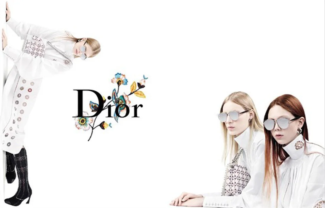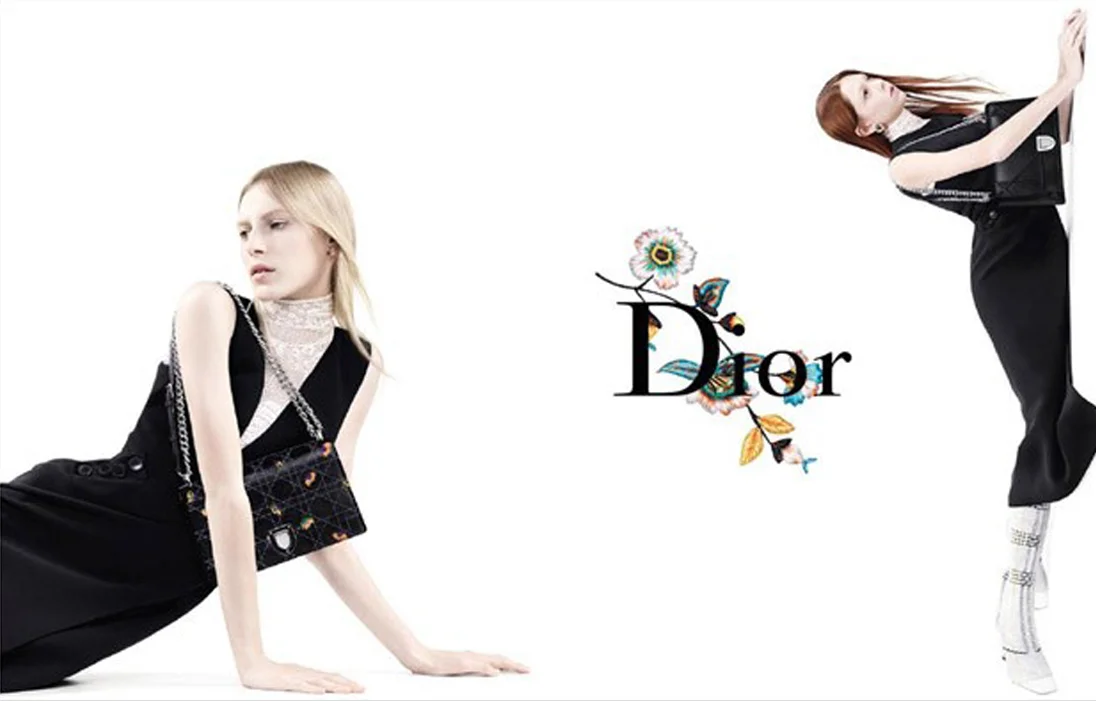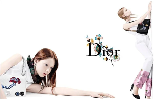 이번 컬렉션에서 여성스러운 실루엣과 꽃무늬들을 선보인 디올은 시원한 여백을 살린 레이아웃과 로고를 감싸는 꽃 그림으로 비주얼을 차별화 하였다. 우아하면서도 모던한 느낌이 포인트.