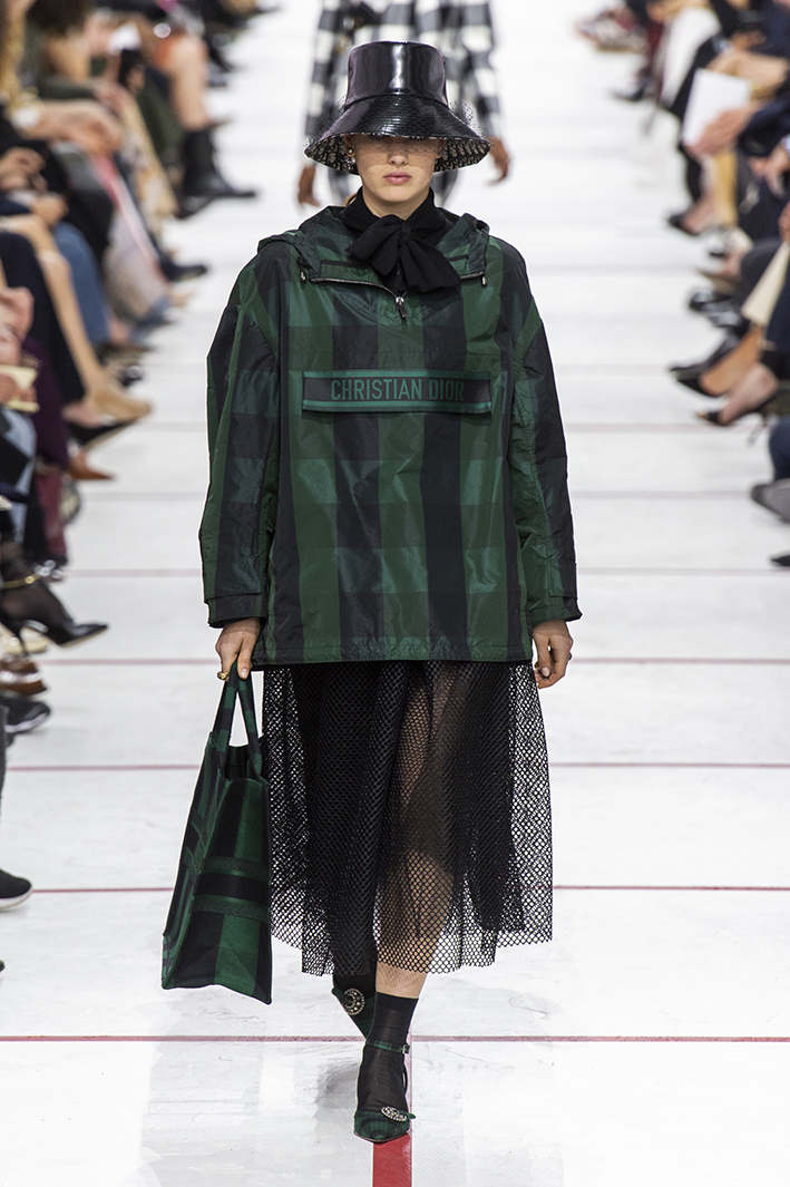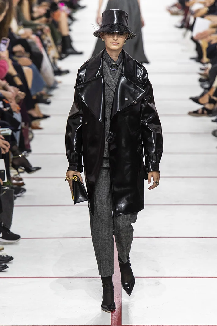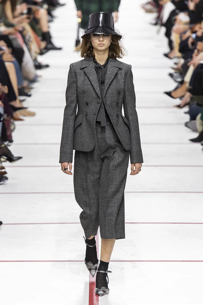 옷으로 돌아가서, 우리는 시계를 20년으로 되돌린다. ‘Chiuri’는 영국의 전후 테디걸스의 컬렉션에서 영감을 얻었다. 남성용 에드워드 자켓, 풀 스커트, 청바지, 가죽, 벨벳 및 아이 라이너가 섞인 클럽에서 활약하는 노동 계급의 록큰롤을 좋아하는 듯 하다. 또한 ‘이브 생 로랑’이 1950년대 후반 남성용 블랙 가죽 자켓을 디올 스타일에 추가로 옮겼다.