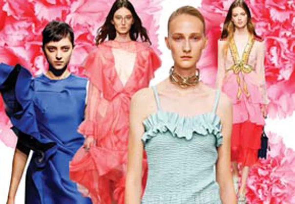 샤방샤방, 하늘하늘한 쉬폰소재 부터 마치 조각같은 웨이브형 까지, 다양한 러플들은 이번 시즌 스타일에 페미닌한 감성을 더해주고 있다. 뉴욕 'Oscar de la Renta' 쇼의 스페인 스타일 케이프와, 밀라노 'Gucci'의 비치는 소재로 보여준 꽃잎같은 디테일이 을 무드의 하이라이트로 꼽을 수 있다.