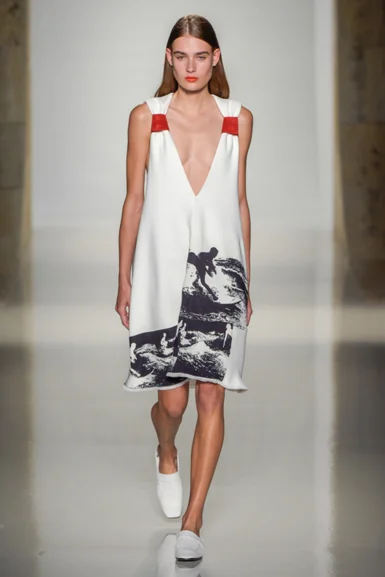 'Tommy Hilfiger'의 캐러비안 컨셉의 컬렉션은 코코넷들과 맥시 드레스들, 그리고 비비드한 컬러로 빛나는 작은 비키니들을 보여주고 있으며, 'DSquared'에서는 스쿠버 드레스들, 타이 염색한 프린트들과 마치 서핑보드의 기어 처럼 발목을 묶는 테크니컬한 느낌의 하이힐들과 함께 일렁이는 파도를 느낄 수 있다.