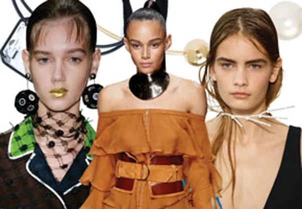 'Balman'의 오버사이즈 메탈 옷깃( 킴 카다시안은 이아이템의 광팬이다), 'Dries Van Noten'의 스키니한 벨벳리본 위의 보석, 그리고 'Dior'의 실크 스카프들은 우리의 3가지 최근 인기 아이템들이다.