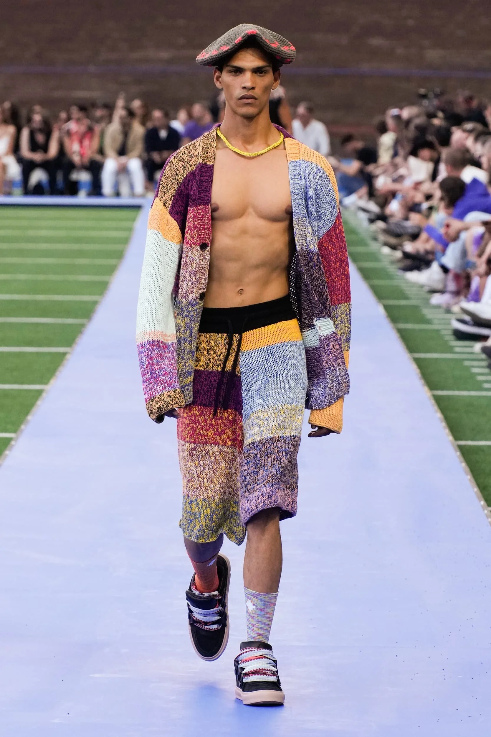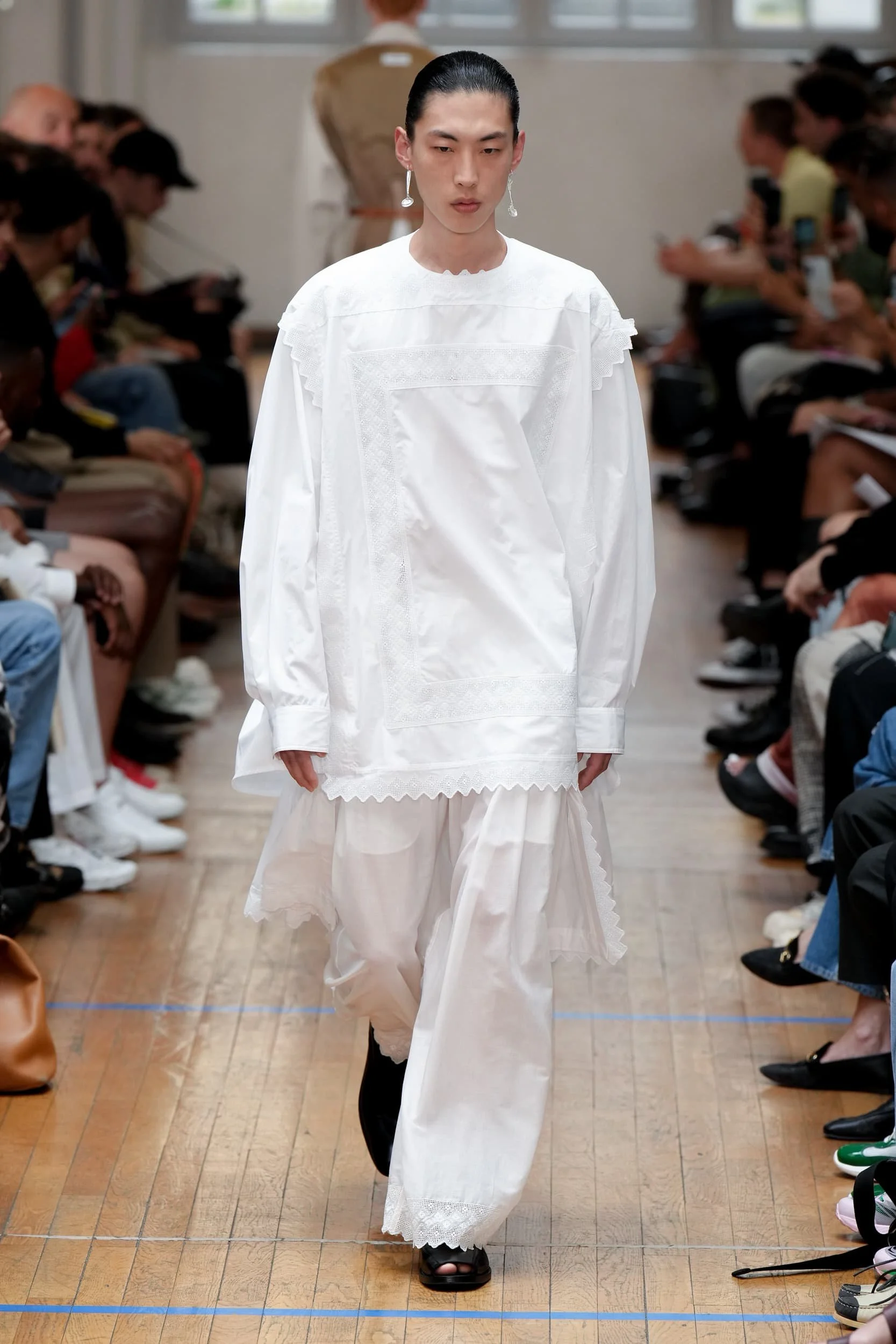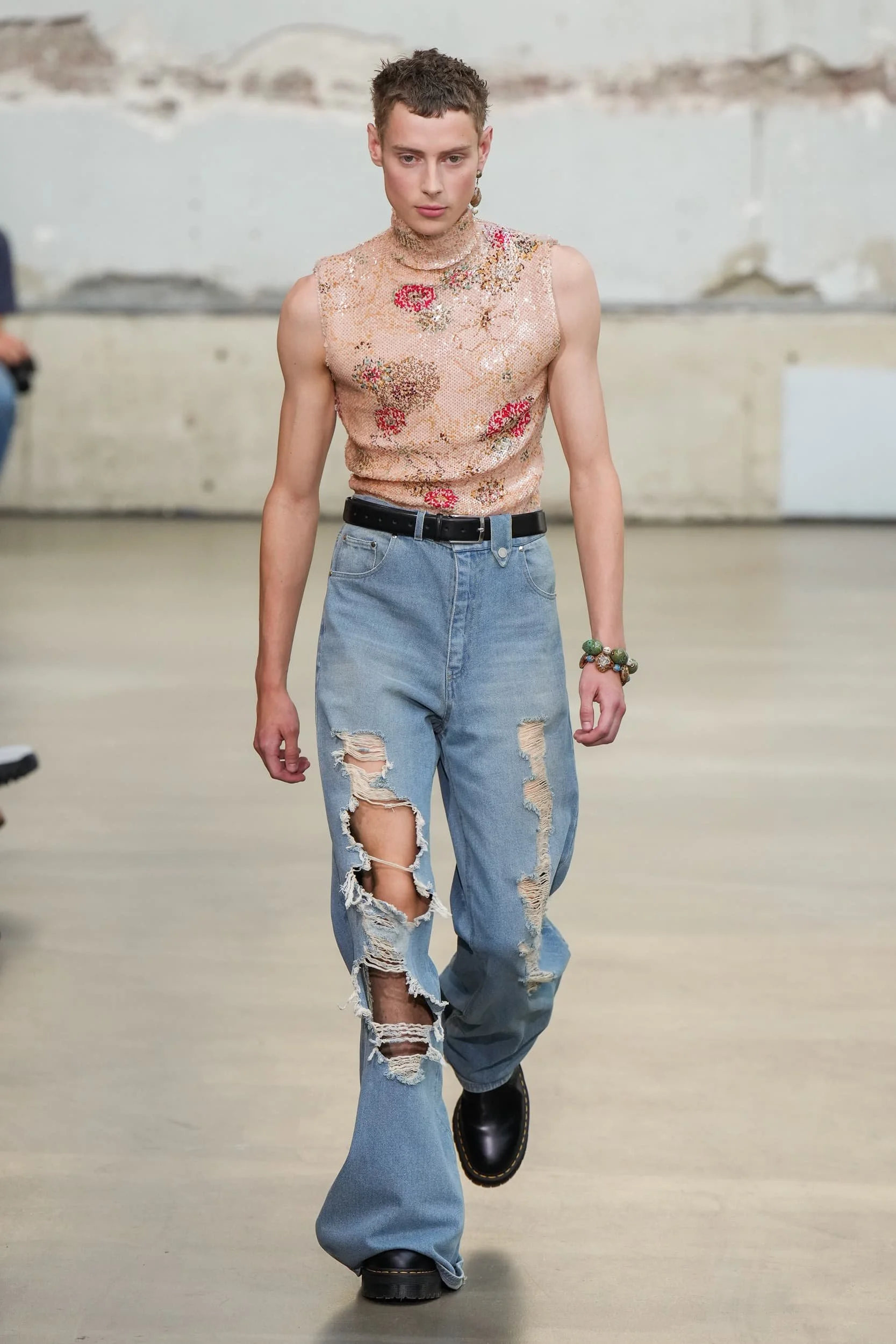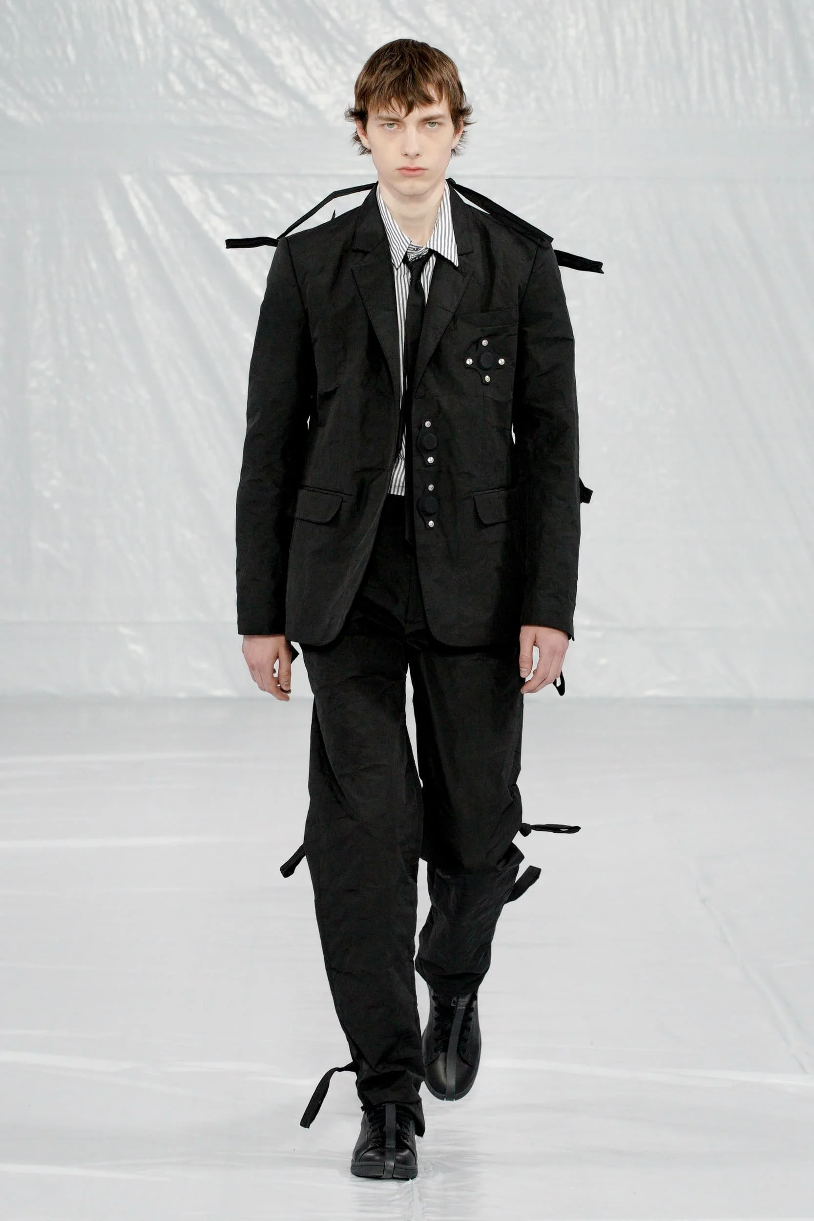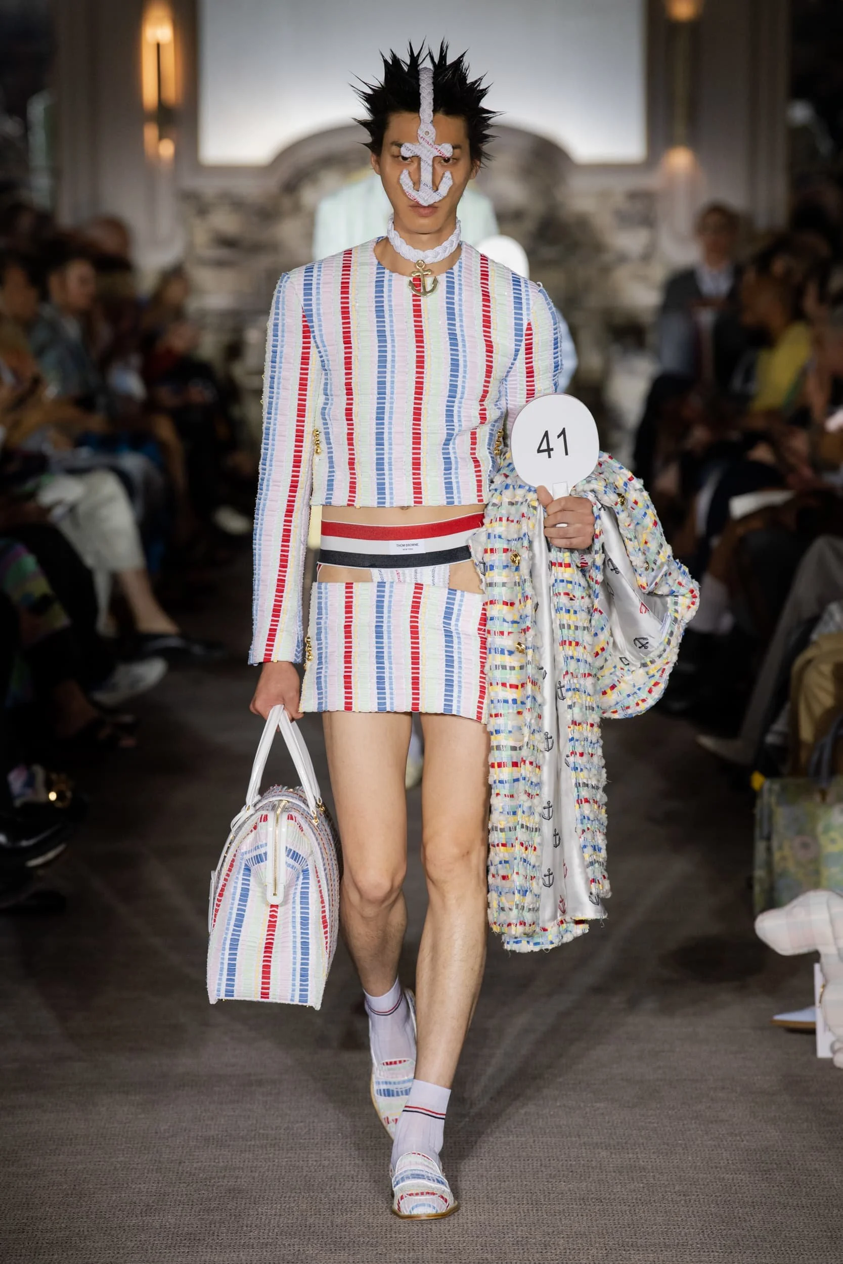 이번 시즌은 많은 장벽을 무너뜨리는 데 어느 정도 도움이 되었지만, 마이크로 반바지에서 카미솔, 그리고 풀온 볼가운(Weisheng과 Mr. Saturday 참조)까지 이러한 스타일이 IRL로 어떻게 반영될지는 두고 봐야 한다. 특히 비약과 한계를 동시에 달성하면서도 여전히 퇴보하는 것처럼 보이는 세계에서 더욱 그렇다. 조르단루카(밀란에서 최고의 캐스팅을 한 사람들), 헤드 메이너, 에곤랩, 그리고 더 유명한 브랜드들이 지켜봐야 할 디자이너들을 다시 불러왔고, 카사블랑카, 아크네 스튜디오의 크로셰와 트위드, 그리고 톰 브라운의 라이제 초미니 스커트 정장에 치마에 대한 선호가 계속되는 것을 볼 수 있다.