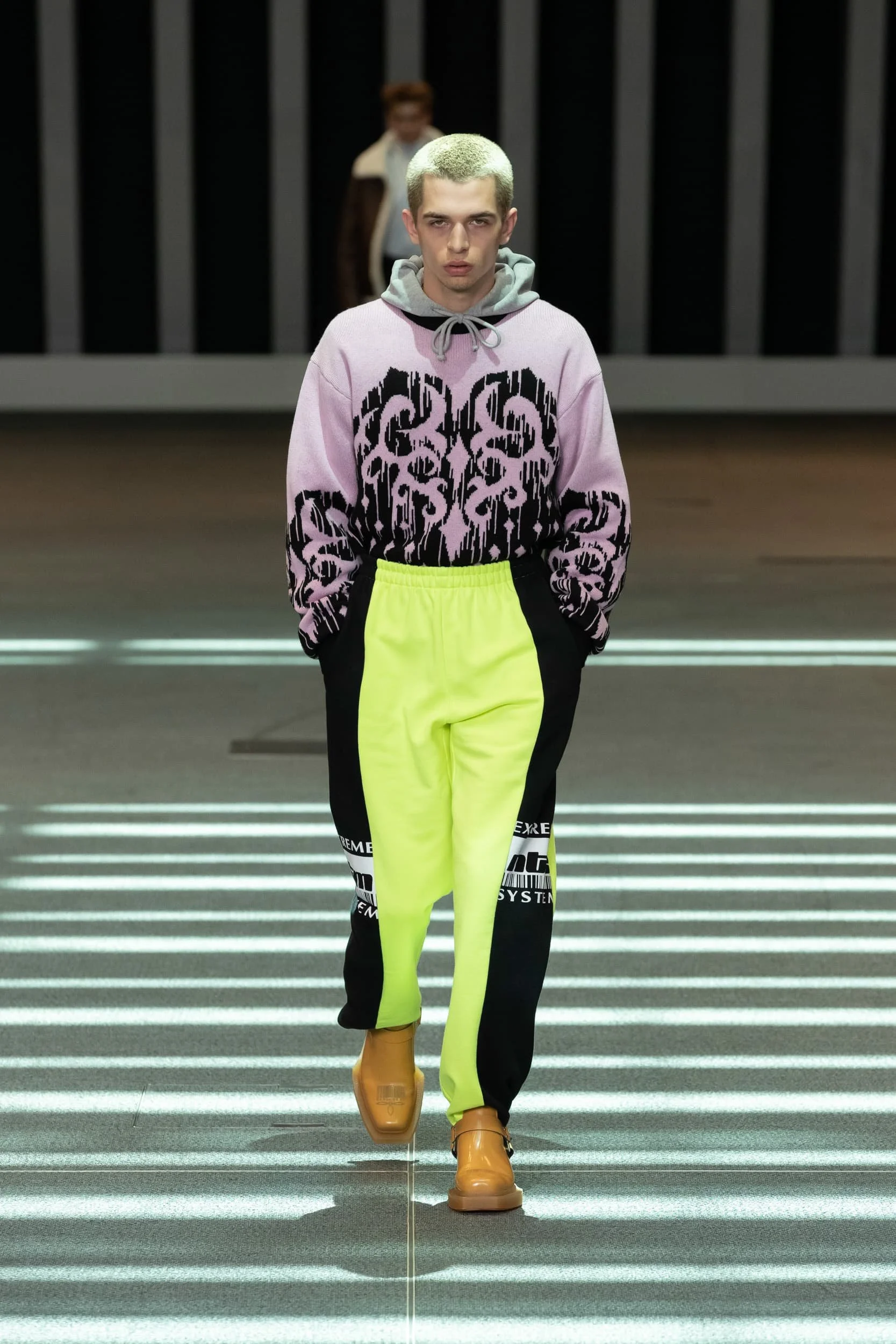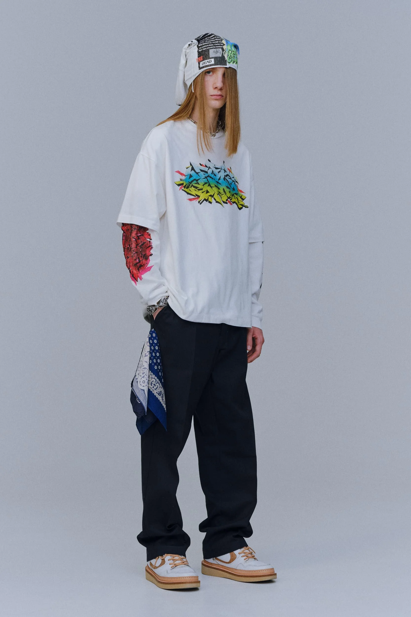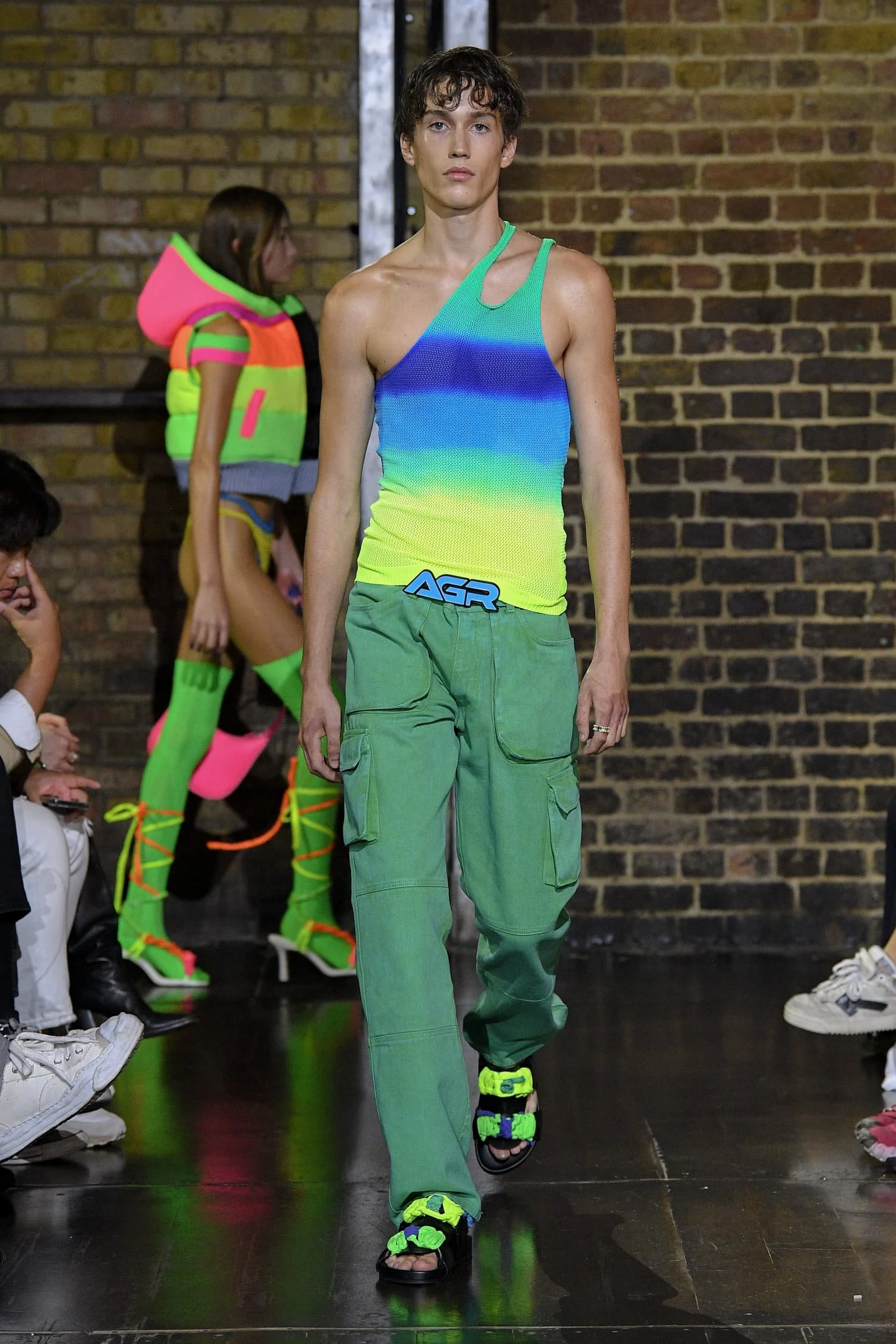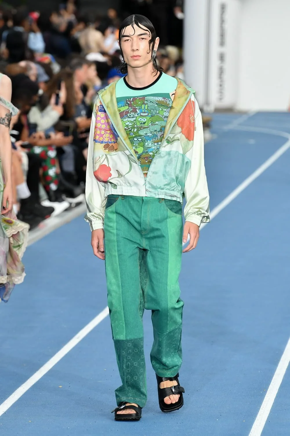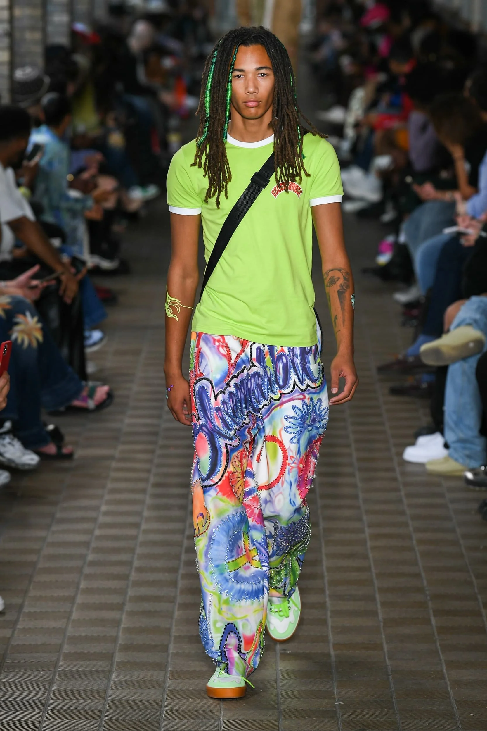캘리포니아의 서퍼 라이프스타일의 쾌락주의는 디자이너들이 트리피 프린트와 알뜰한 레이어링을 두 문화 레퍼런스의 젊은 매쉬업으로 혼합하면서 1990년대 레이브 문화와 그 시대의 상징적인 브랜드의 귀환을 볼 수 있는 새로운 캐주얼 의류 솔루션을 제공하고 있다. 디스퀘어드2의 캐튼 오버 형제는 발리 사롱, 엑스트라 롱 버뮤다, 웨이브 체크 블레이저에 교묘하게 녹아든 재작업된 스쿠버를 섞어 완벽한 레이어드 조합을 구현했고, 피갈레의 옴버 와이드 바지는 멀티컬러 로프 벨트로 다듬었다. 그리고 하우스 톤의 비욘세의 BPM이 사운드트랙으로 나오면서 창고 파티를 연상시키는 데이글로브라이트는 그래픽 로고와 Vetments의 트랙 팬츠, 그리고 1990년대 쉘 트랙 슈트의 새로운 시대를 열 수 있는 Ahluwalia의 컬러 블록 스포츠 세트의 배경을 제공했다. 그래피티 또한 잠재적인 협업 기회로 주목해야 할 인쇄물이 되었다.