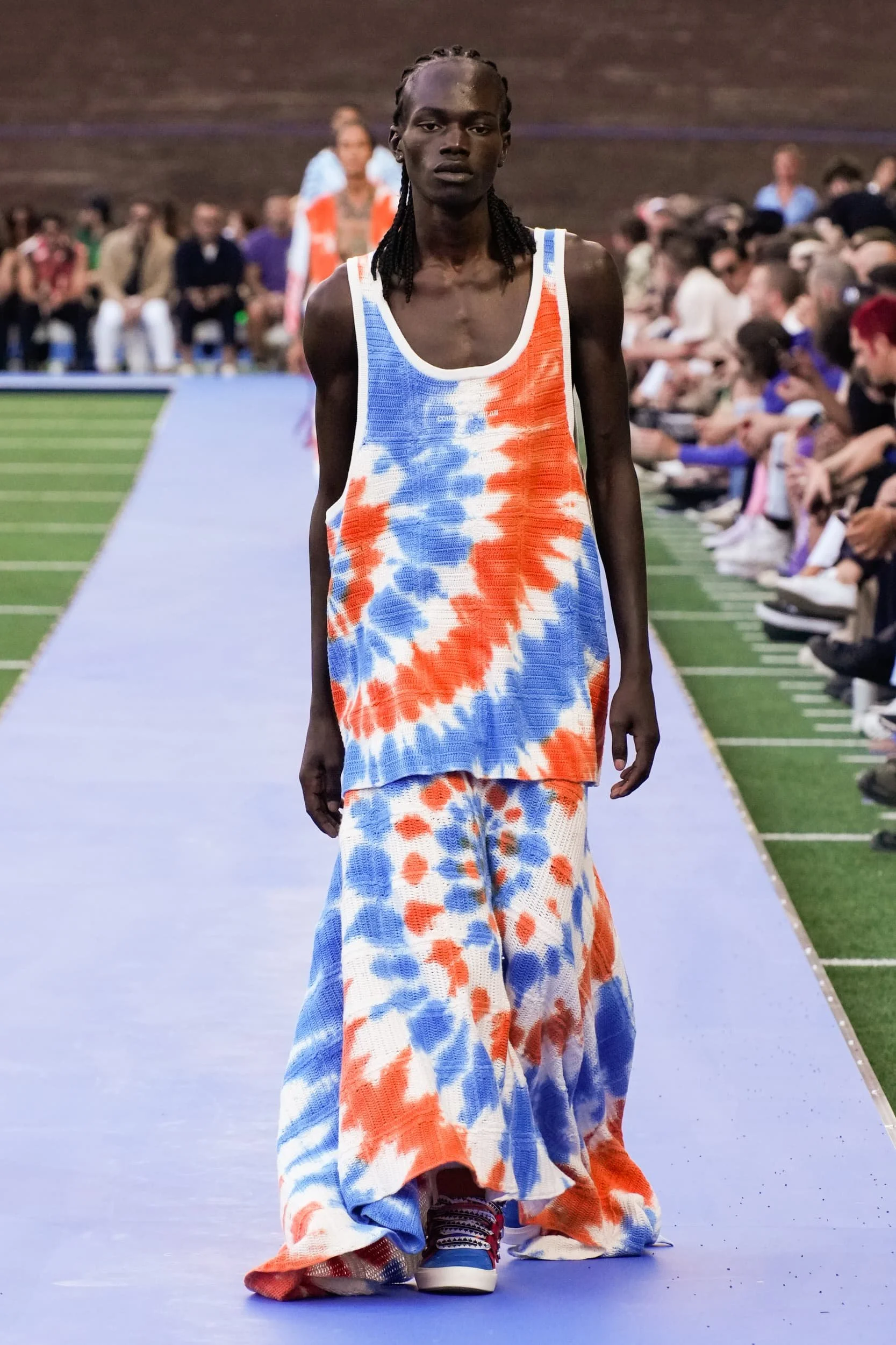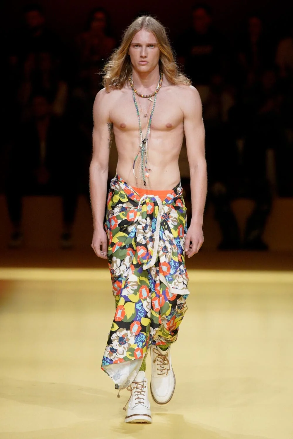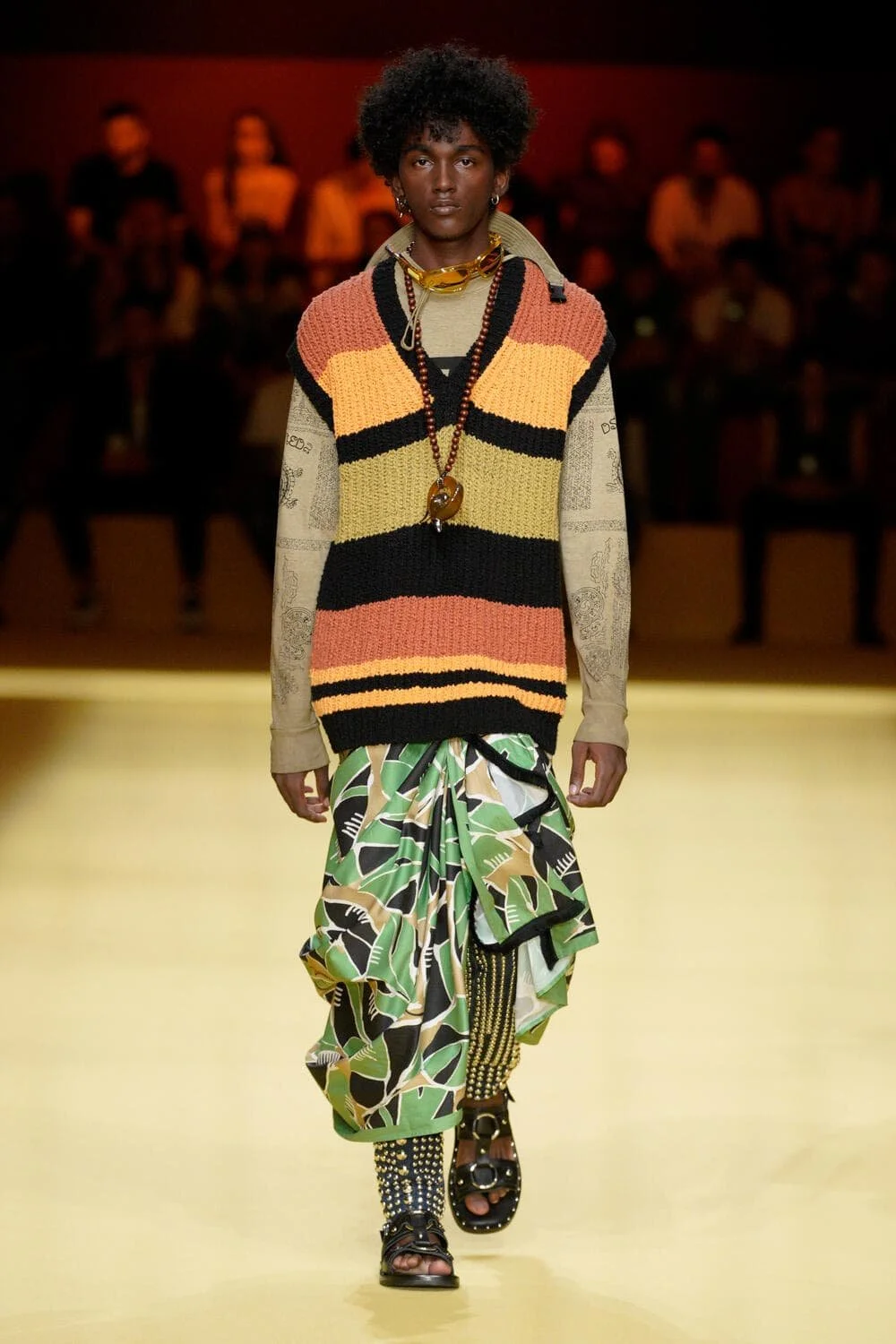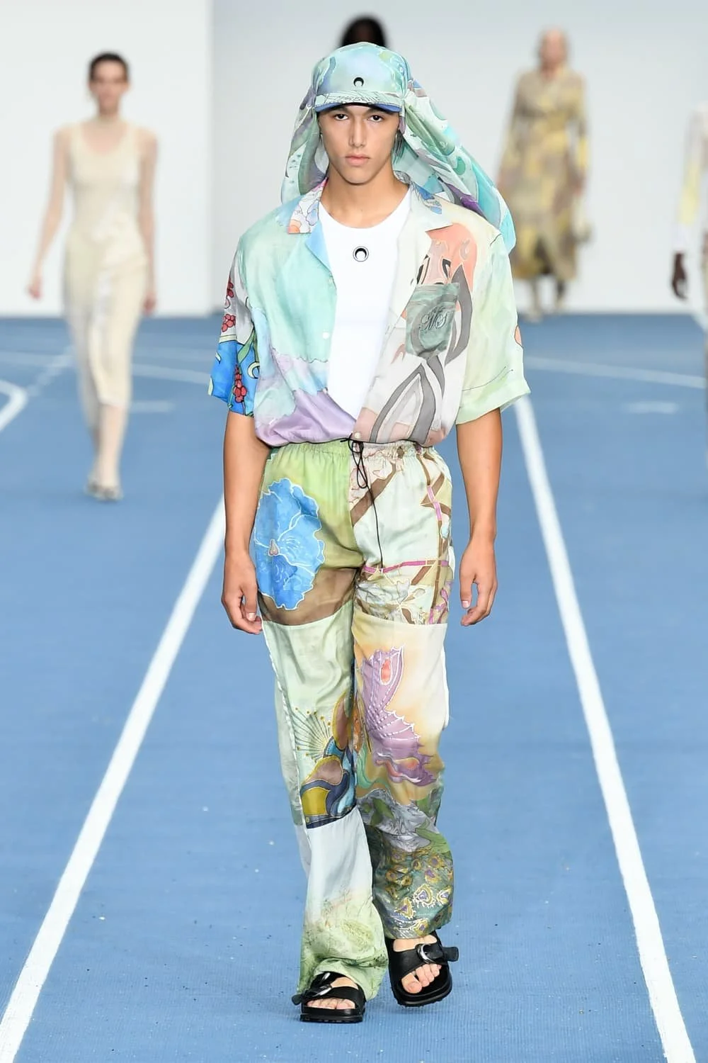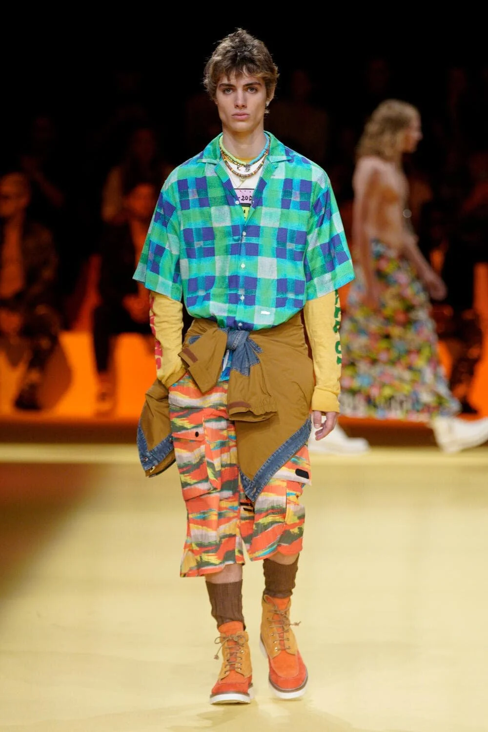 캘리포니아의 서퍼 라이프스타일의 쾌락주의는 디자이너들이 트리피 프린트와 알뜰한 레이어링을 두 문화 레퍼런스의 젊은 매쉬업으로 혼합하면서 1990년대 레이브 문화와 그 시대의 상징적인 브랜드의 귀환을 볼 수 있는 새로운 캐주얼 의류 솔루션을 제공하고 있다. 디스퀘어드2의 캐튼 오버 형제는 발리 사롱, 엑스트라 롱 버뮤다, 웨이브 체크 블레이저에 교묘하게 녹아든 재작업된 스쿠버를 섞어 완벽한 레이어드 조합을 구현했고, 피갈레의 옴버 와이드 바지는 멀티컬러 로프 벨트로 다듬었다. 그리고 하우스 톤의 비욘세의 BPM이 사운드트랙으로 나오면서 창고 파티를 연상시키는 데이글로브라이트는 그래픽 로고와 Vetments의 트랙 팬츠, 그리고 1990년대 쉘 트랙 슈트의 새로운 시대를 열 수 있는 Ahluwalia의 컬러 블록 스포츠 세트의 배경을 제공했다. 그래피티 또한 잠재적인 협업 기회로 주목해야 할 인쇄물이 되었다.