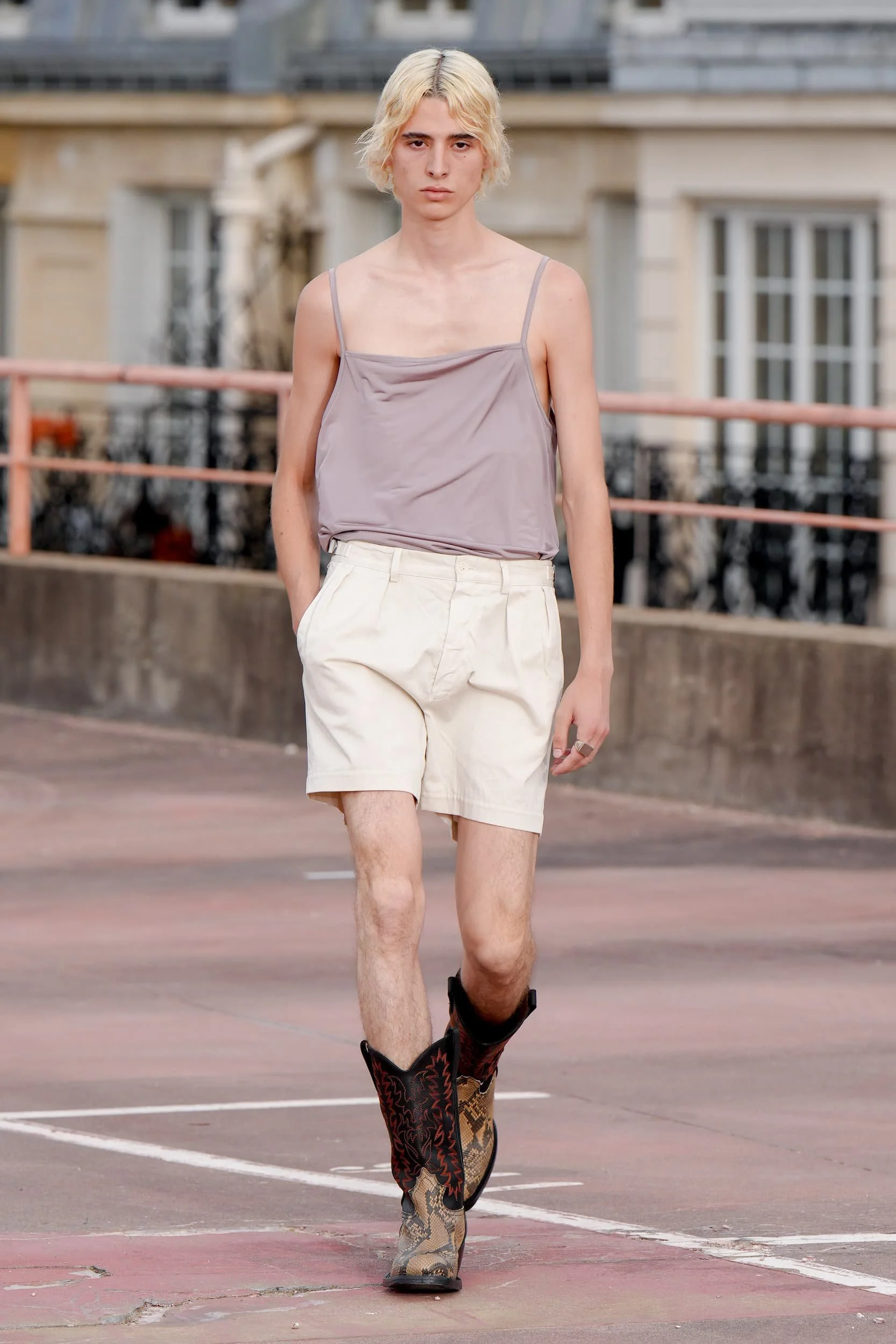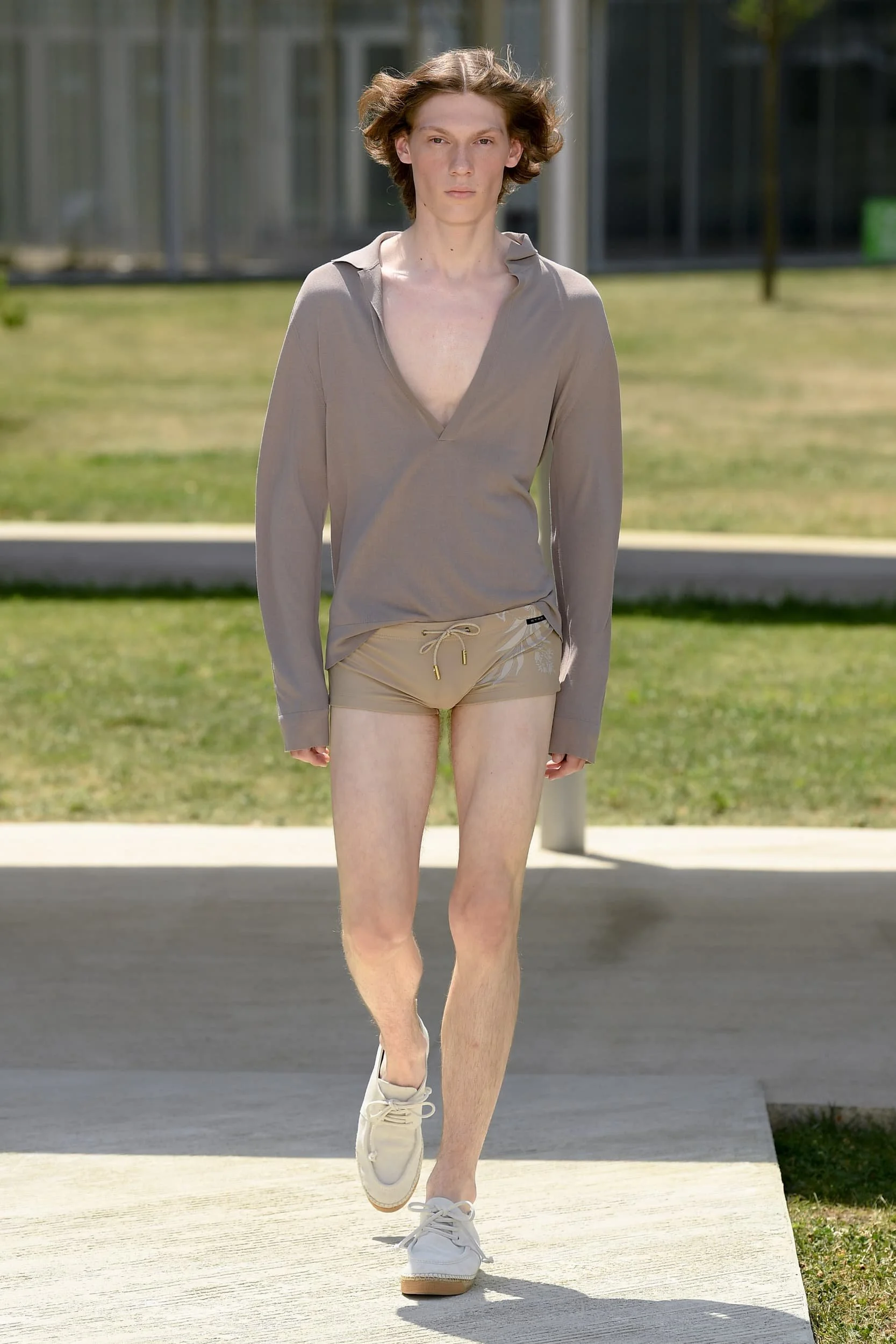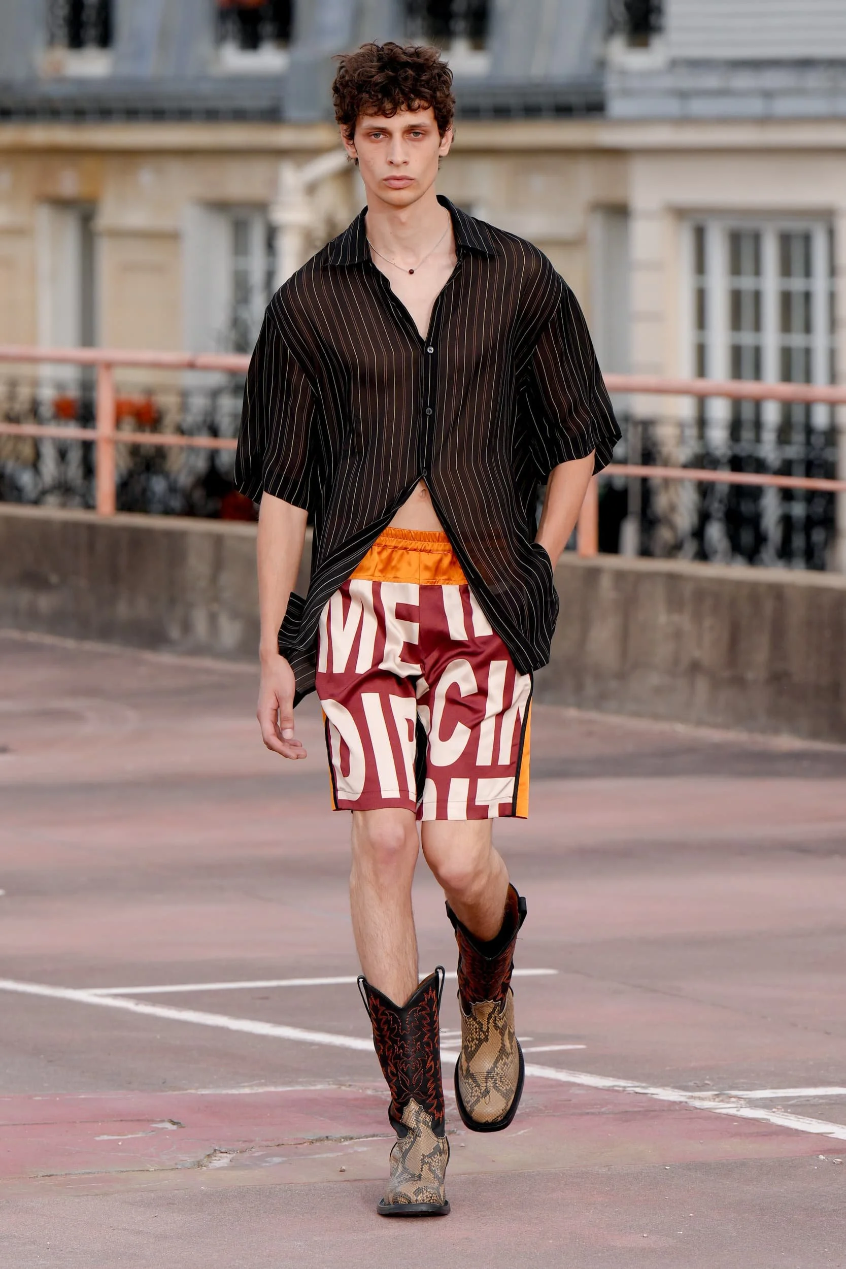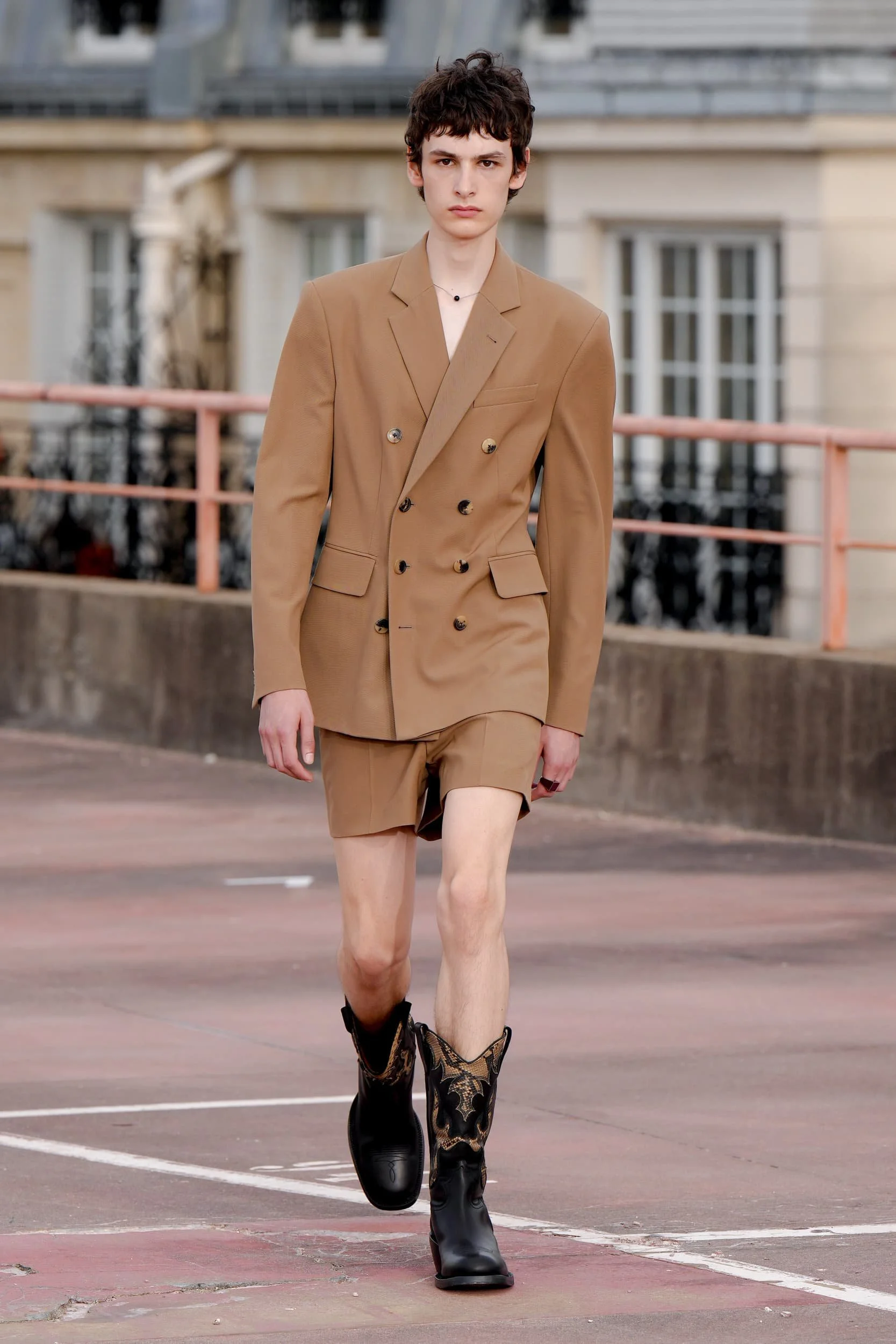 옷의 기장이 올라가는 동안, 치마만 점점 짧아지는 것 뿐 아니라, 남성복 디자이너들 또한 잘린 것처럼 보이는 마이크로 버전의 반바지를 만드는 위험을 감수했다. 이곤랩과 프라다처럼 검은 가죽을 가장 뚜렷한 스타일로 보여주는 버전은 퀴어 커뮤니티와 뚜렷한 연관성을 가지고 있는데, 퀴어 커뮤니티는 쇼 전반에 걸쳐 광범위한 영향을 미쳤다고 할 수 있다. 이러한 디자인들이 주류를 이루면서, 다양한 형태의 남성성에 대한 수용을 증가시키는 것에 대한 기대로 이어졌다. 그러나 대부분의 반바지 스타일링은 서퍼 룩을 떠올리는 헐렁한 버뮤다 실루엣이나 Etro의 새틴을 입은 권투선수들의 유니폼에 초점이 맞춰졌다. 수트 바지도 짧아졌고, 펜디, 지방시, 조던 루카에서 대부분의 모델들이 셔츠를 입지 않은 여름 테일러링에 대한 모던한 느낌을 주었고, 수트는 2023년 봄에 답답한 격식을 떨쳐버릴 것이다.
