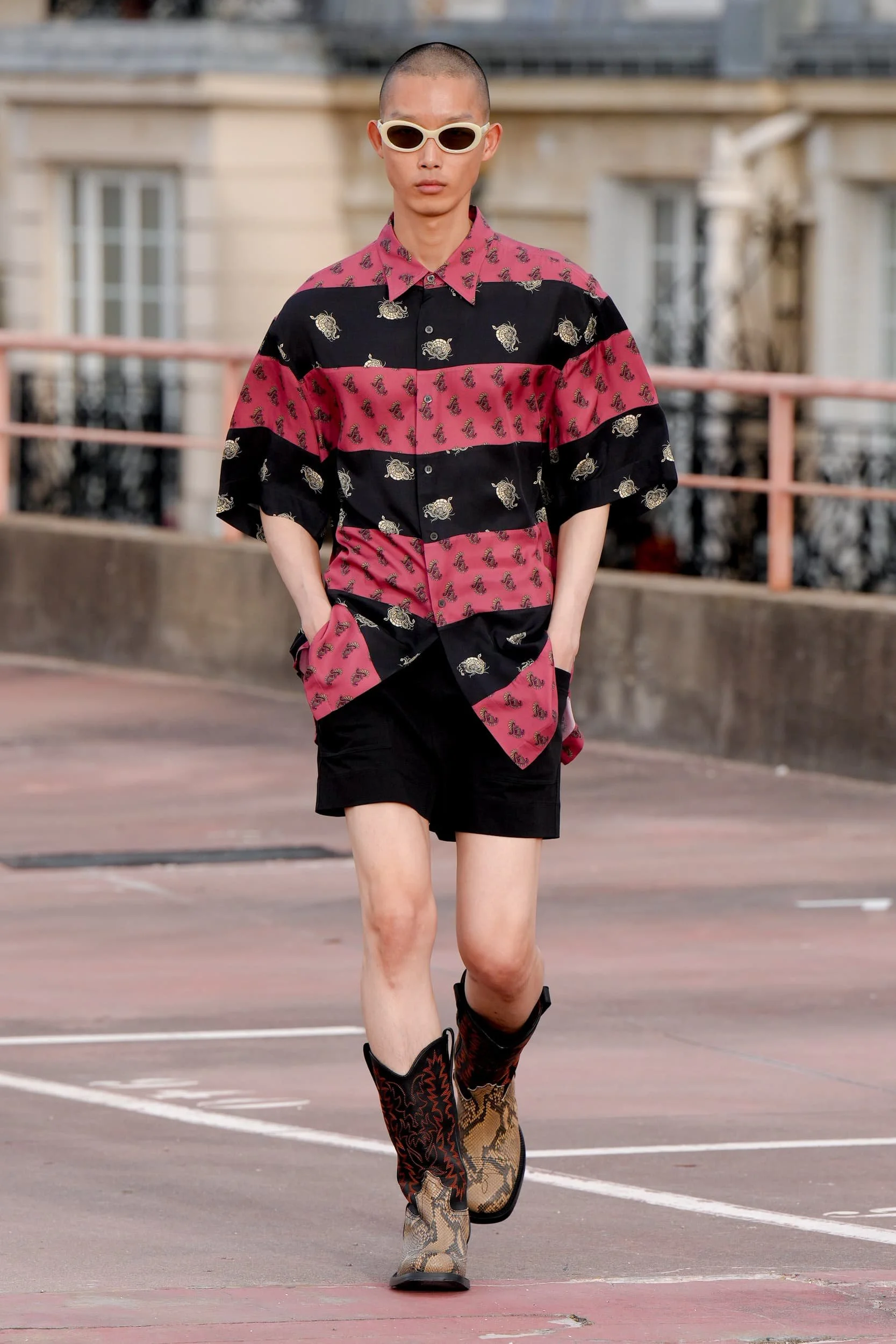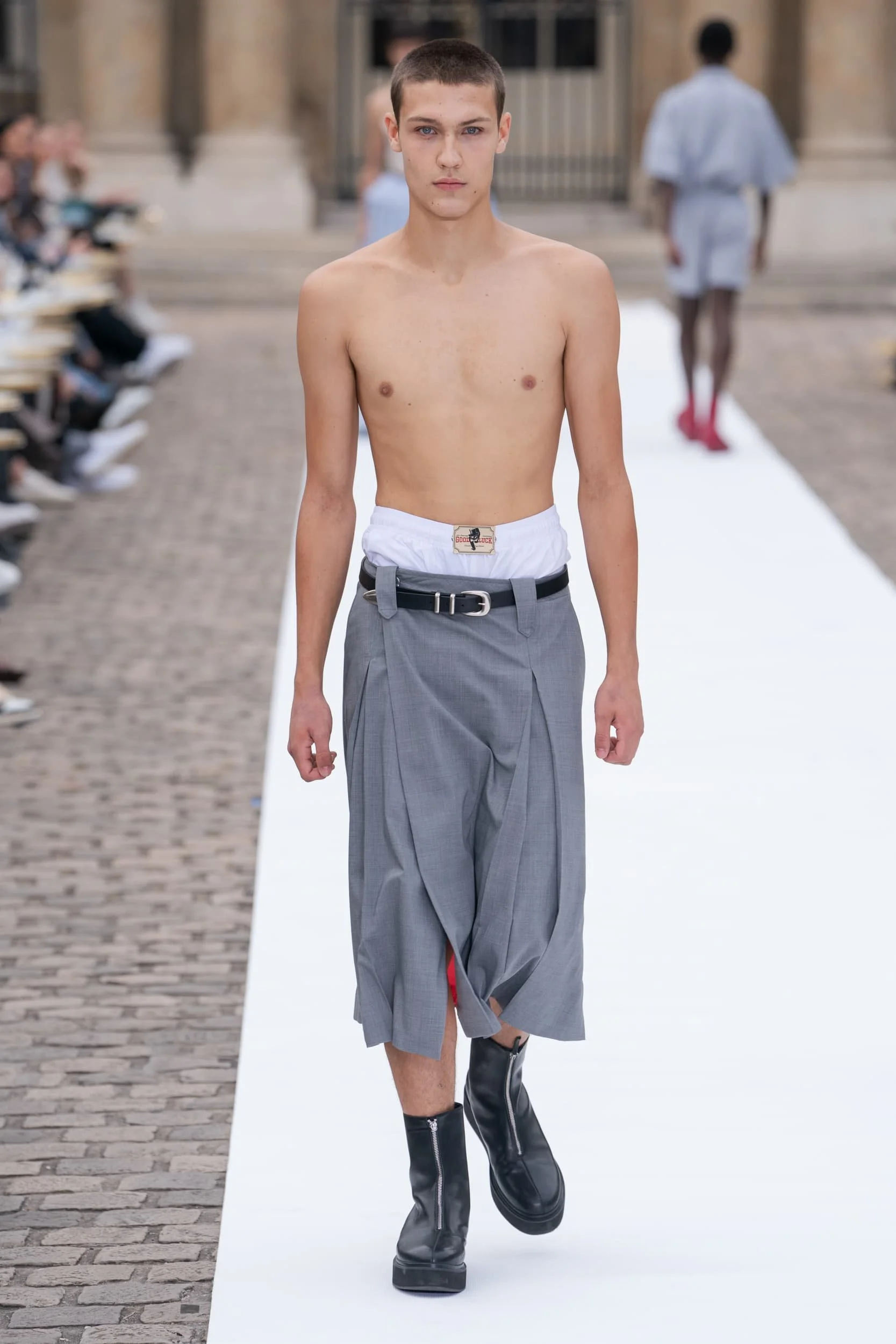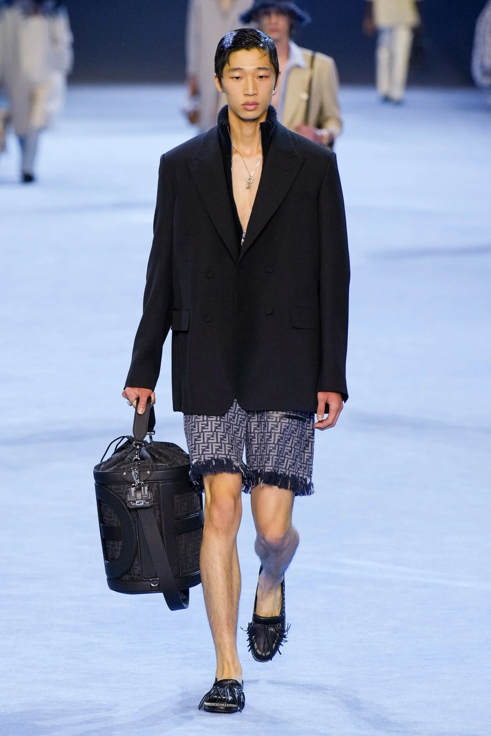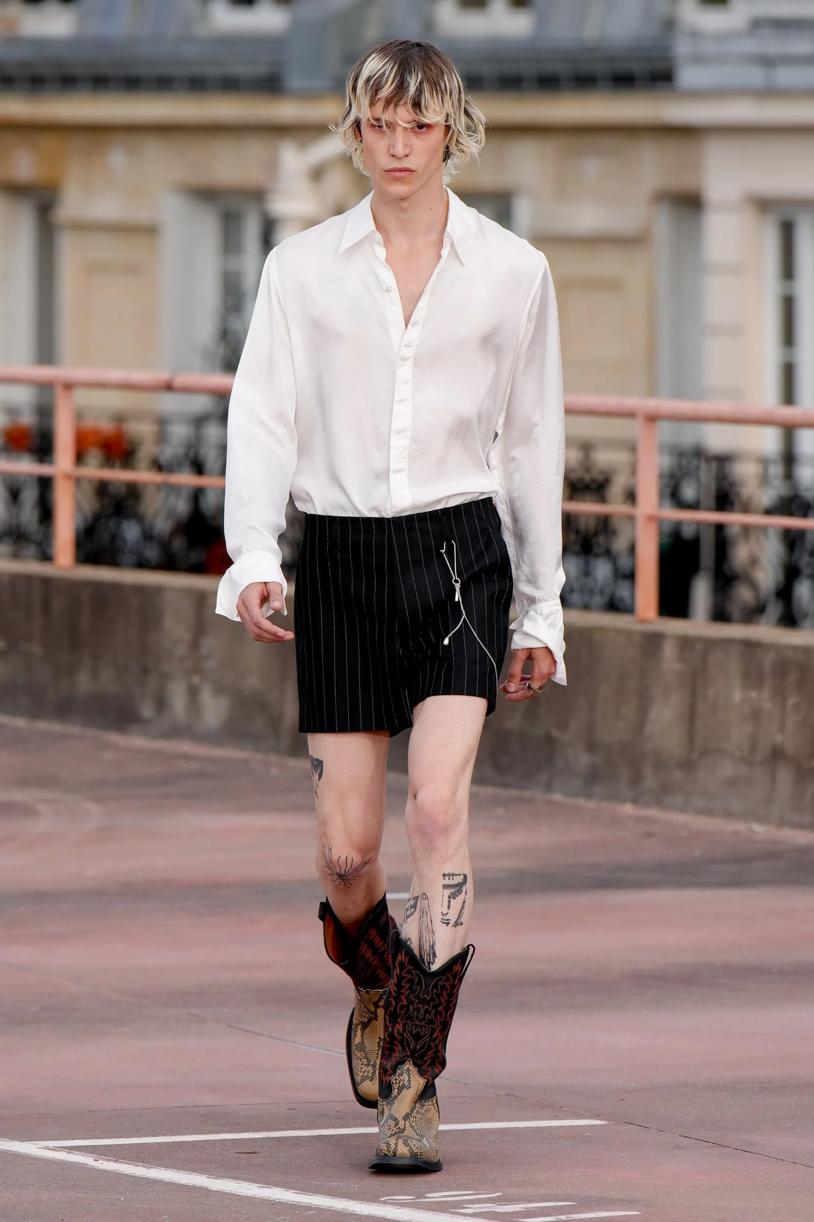 옷의 기장이 올라가는 동안, 치마만 점점 짧아지는 것 뿐 아니라, 남성복 디자이너들 또한 잘린 것처럼 보이는 마이크로 버전의 반바지를 만드는 위험을 감수했다. 이곤랩과 프라다처럼 검은 가죽을 가장 뚜렷한 스타일로 보여주는 버전은 퀴어 커뮤니티와 뚜렷한 연관성을 가지고 있는데, 퀴어 커뮤니티는 쇼 전반에 걸쳐 광범위한 영향을 미쳤다고 할 수 있다. 이러한 디자인들이 주류를 이루면서, 다양한 형태의 남성성에 대한 수용을 증가시키는 것에 대한 기대로 이어졌다. 그러나 대부분의 반바지 스타일링은 서퍼 룩을 떠올리는 헐렁한 버뮤다 실루엣이나 Etro의 새틴을 입은 권투선수들의 유니폼에 초점이 맞춰졌다. 수트 바지도 짧아졌고, 펜디, 지방시, 조던 루카에서 대부분의 모델들이 셔츠를 입지 않은 여름 테일러링에 대한 모던한 느낌을 주었고, 수트는 2023년 봄에 답답한 격식을 떨쳐버릴 것이다.