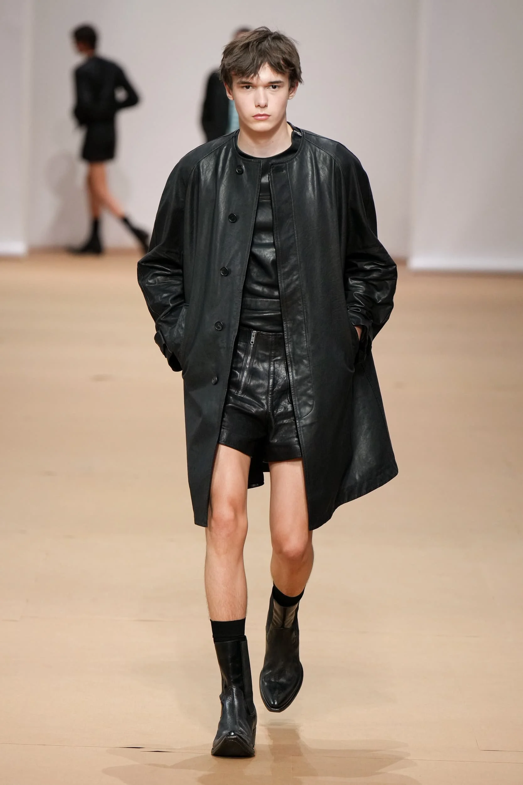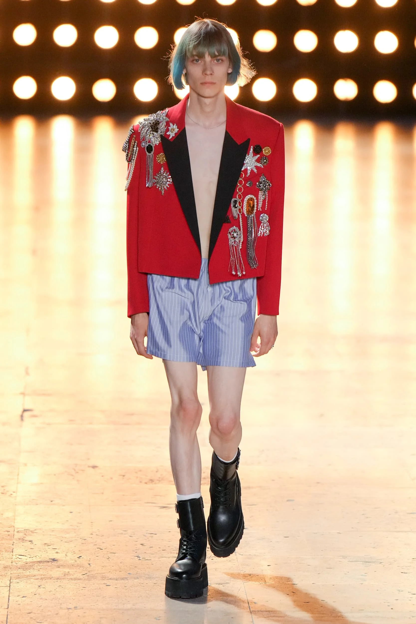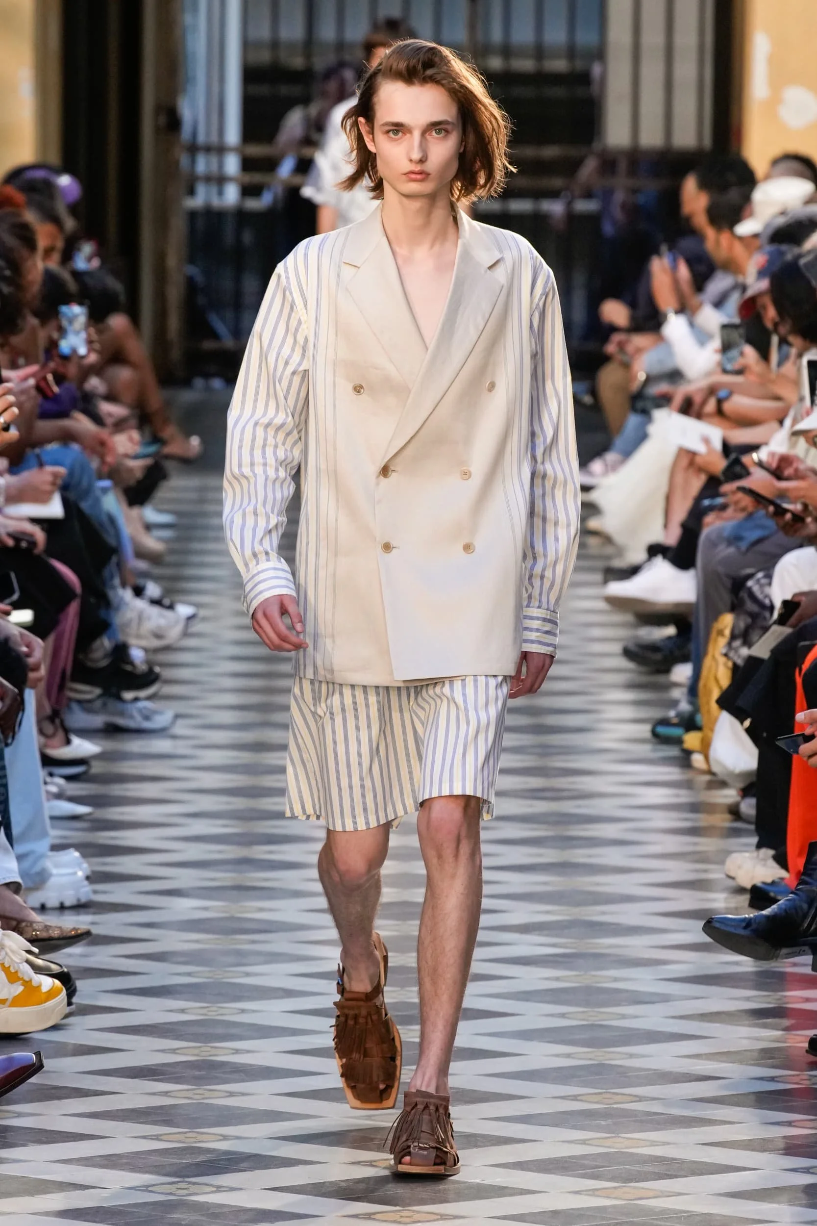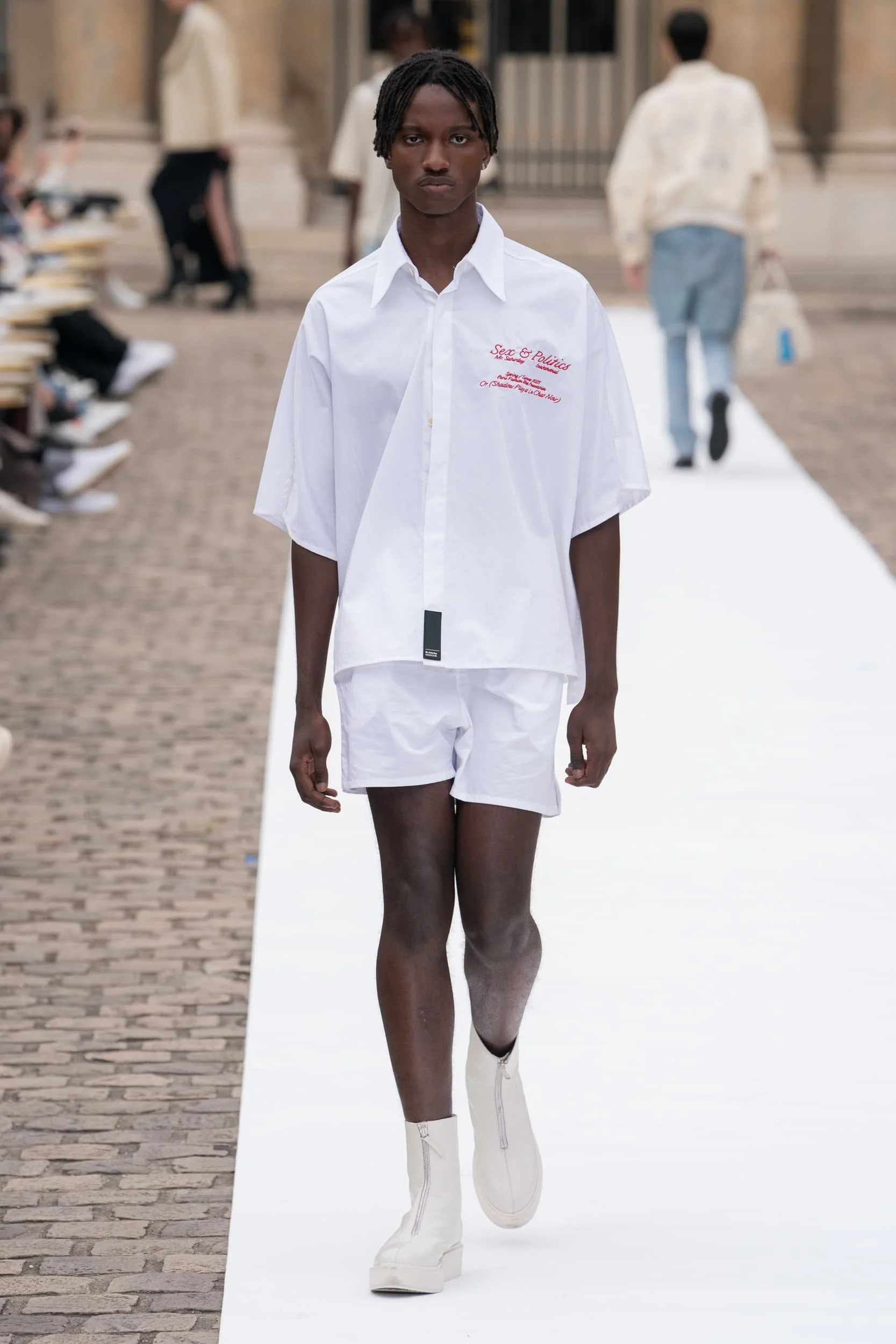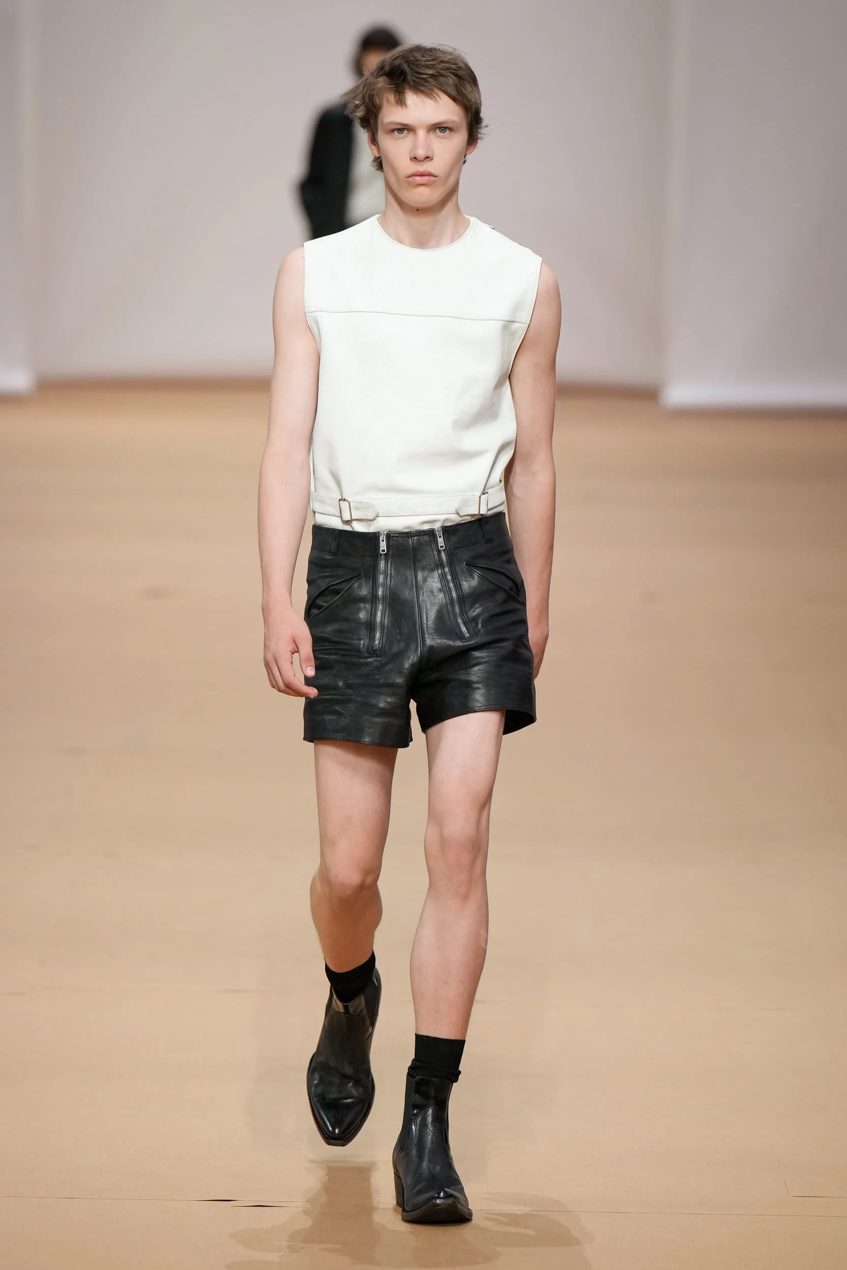 옷의 기장이 올라가는 동안, 치마만 점점 짧아지는 것 뿐 아니라, 남성복 디자이너들 또한 잘린 것처럼 보이는 마이크로 버전의 반바지를 만드는 위험을 감수했다. 이곤랩과 프라다처럼 검은 가죽을 가장 뚜렷한 스타일로 보여주는 버전은 퀴어 커뮤니티와 뚜렷한 연관성을 가지고 있는데, 퀴어 커뮤니티는 쇼 전반에 걸쳐 광범위한 영향을 미쳤다고 할 수 있다. 이러한 디자인들이 주류를 이루면서, 다양한 형태의 남성성에 대한 수용을 증가시키는 것에 대한 기대로 이어졌다. 그러나 대부분의 반바지 스타일링은 서퍼 룩을 떠올리는 헐렁한 버뮤다 실루엣이나 Etro의 새틴을 입은 권투선수들의 유니폼에 초점이 맞춰졌다. 수트 바지도 짧아졌고, 펜디, 지방시, 조던 루카에서 대부분의 모델들이 셔츠를 입지 않은 여름 테일러링에 대한 모던한 느낌을 주었고, 수트는 2023년 봄에 답답한 격식을 떨쳐버릴 것이다.