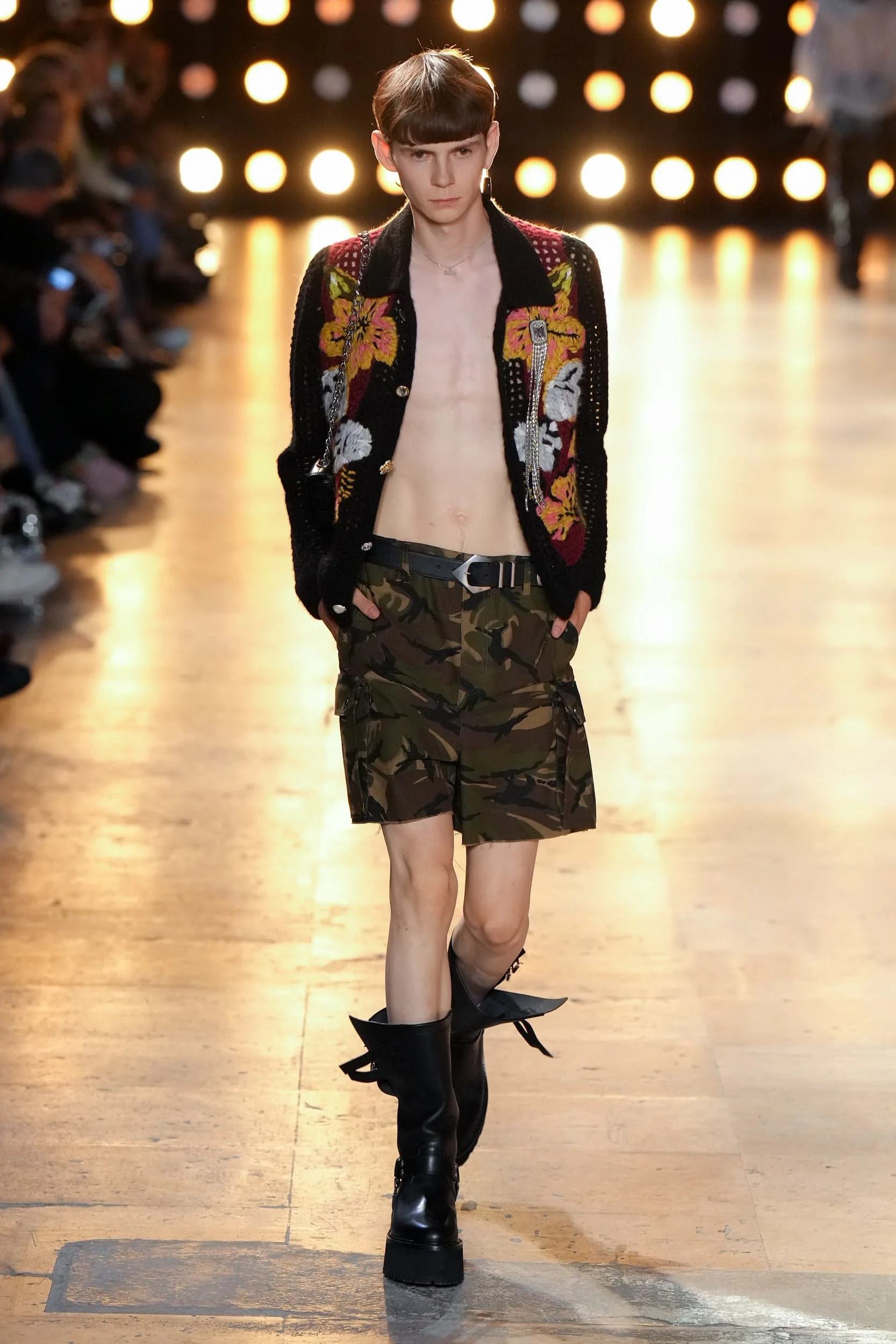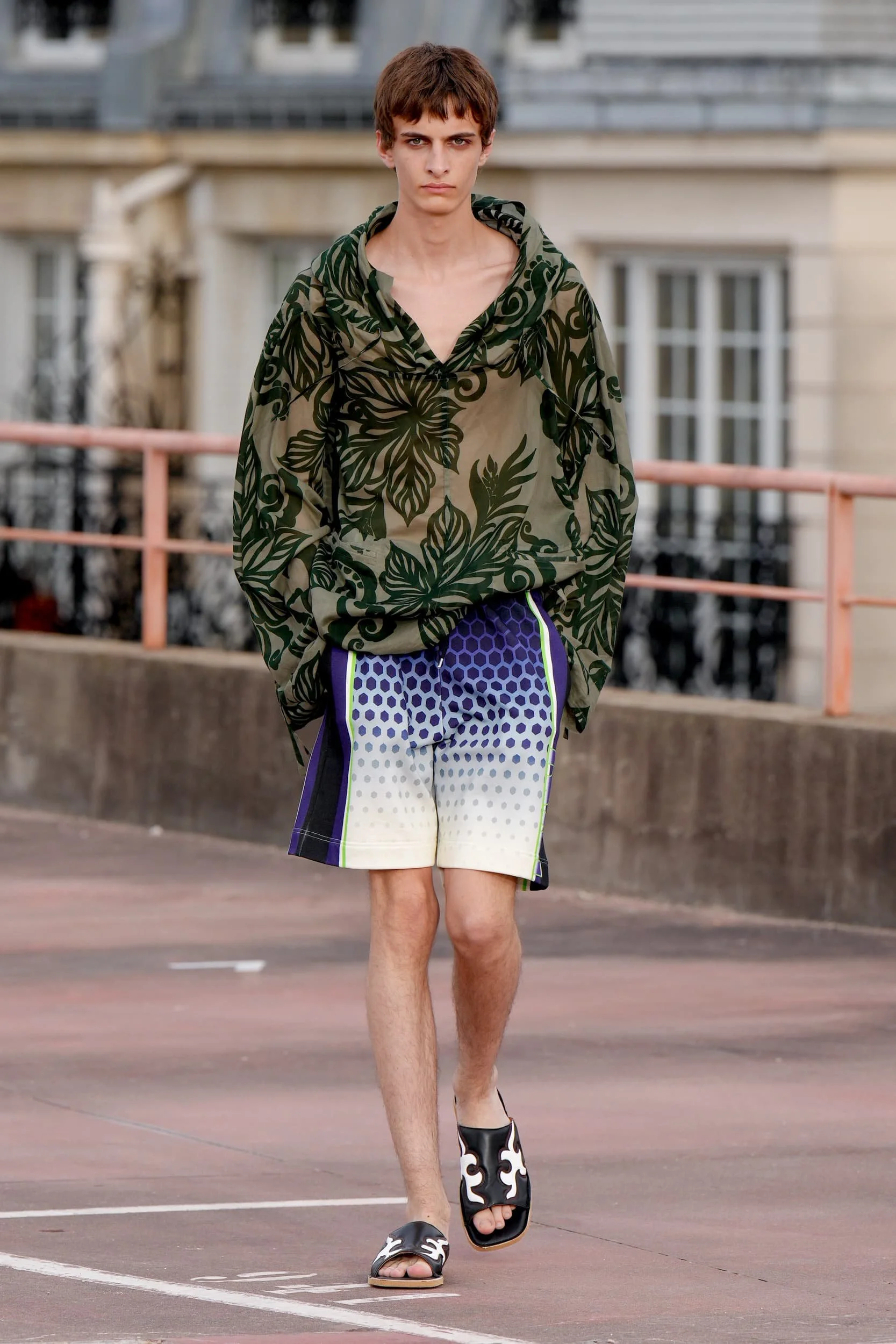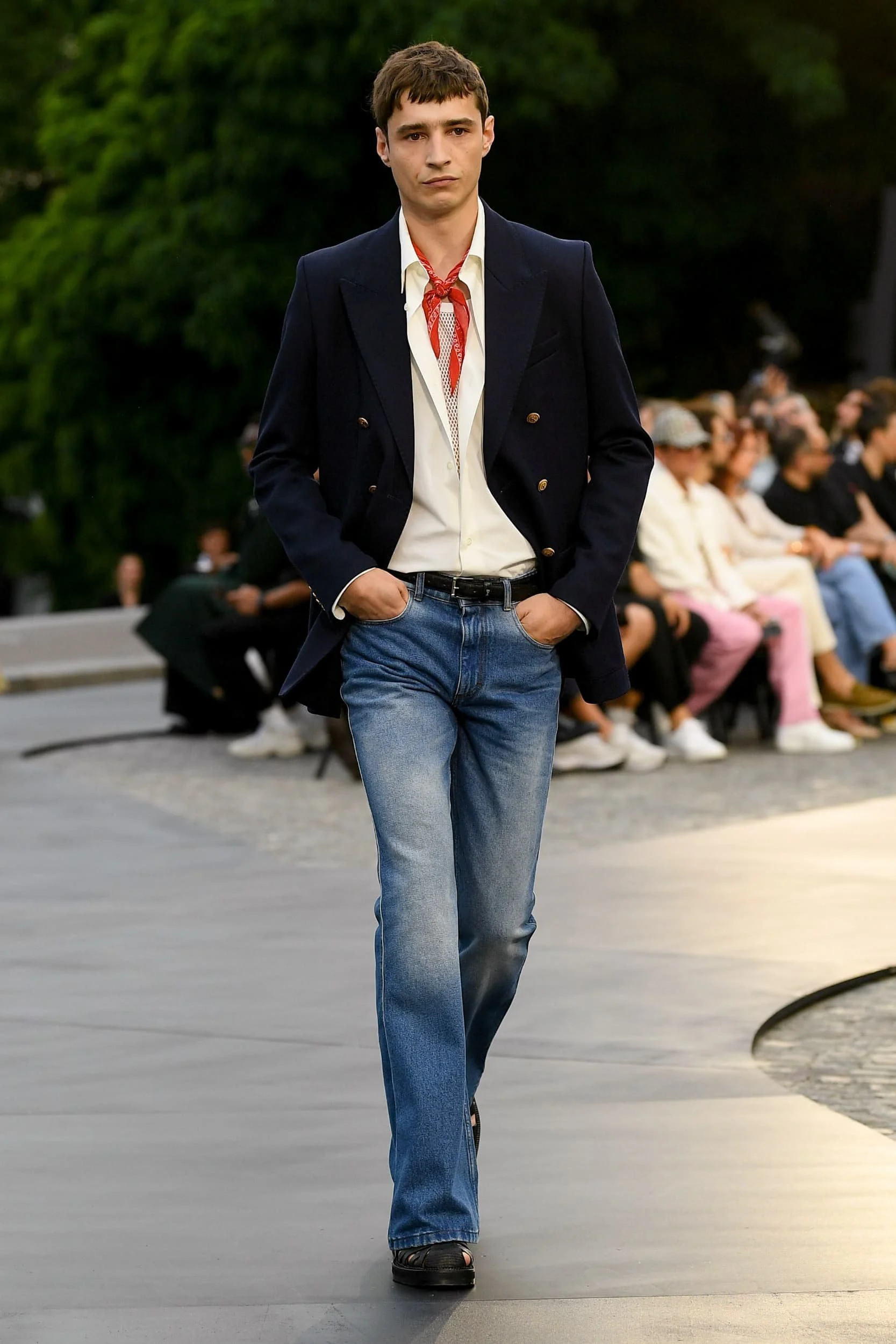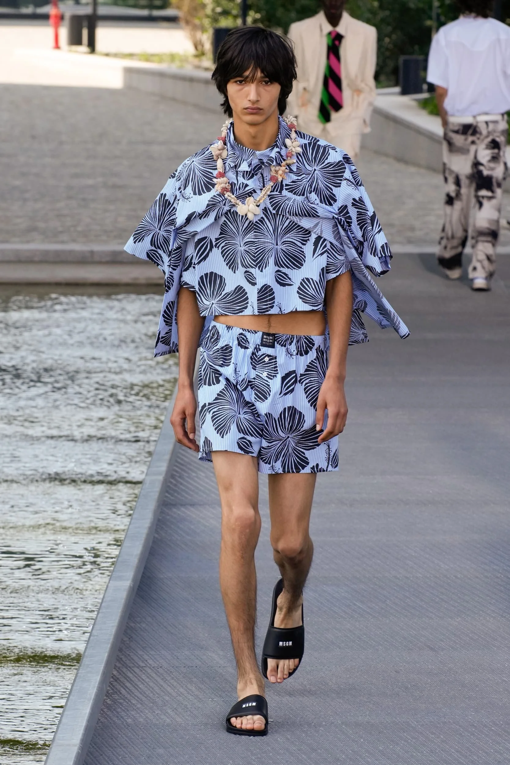 옷의 기장이 올라가는 동안, 치마만 점점 짧아지는 것 뿐 아니라, 남성복 디자이너들 또한 잘린 것처럼 보이는 마이크로 버전의 반바지를 만드는 위험을 감수했다. 이곤랩과 프라다처럼 검은 가죽을 가장 뚜렷한 스타일로 보여주는 버전은 퀴어 커뮤니티와 뚜렷한 연관성을 가지고 있는데, 퀴어 커뮤니티는 쇼 전반에 걸쳐 광범위한 영향을 미쳤다고 할 수 있다. 이러한 디자인들이 주류를 이루면서, 다양한 형태의 남성성에 대한 수용을 증가시키는 것에 대한 기대로 이어졌다. 그러나 대부분의 반바지 스타일링은 서퍼 룩을 떠올리는 헐렁한 버뮤다 실루엣이나 Etro의 새틴을 입은 권투선수들의 유니폼에 초점이 맞춰졌다. 수트 바지도 짧아졌고, 펜디, 지방시, 조던 루카에서 대부분의 모델들이 셔츠를 입지 않은 여름 테일러링에 대한 모던한 느낌을 주었고, 수트는 2023년 봄에 답답한 격식을 떨쳐버릴 것이다.