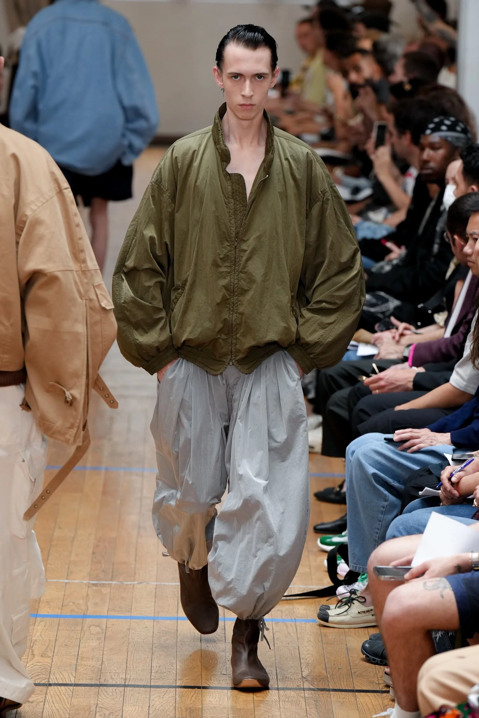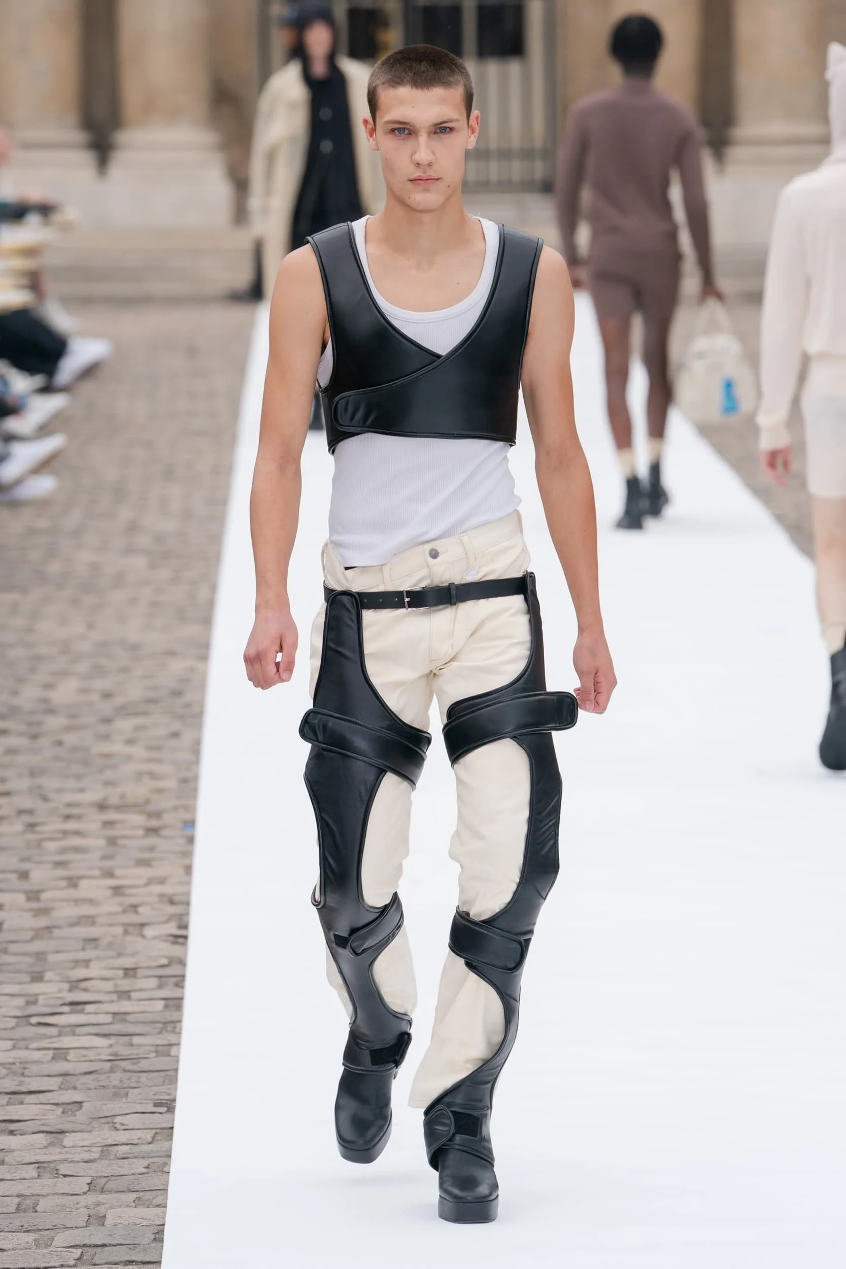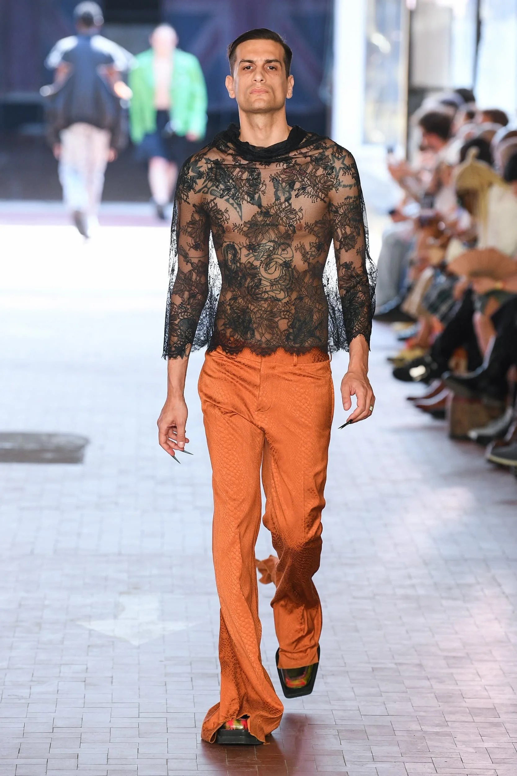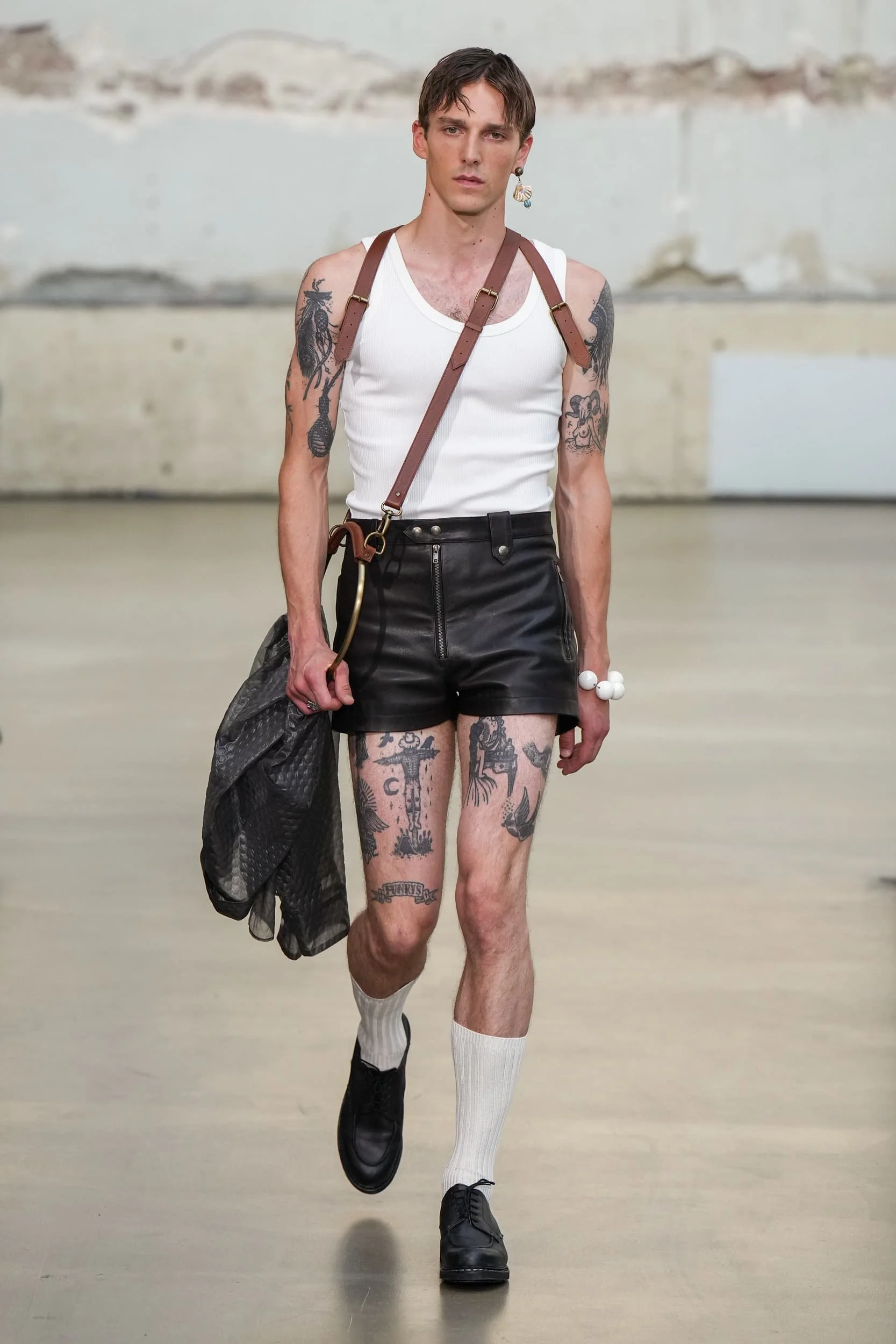 옷의 기장이 올라가는 동안, 치마만 점점 짧아지는 것 뿐 아니라, 남성복 디자이너들 또한 잘린 것처럼 보이는 마이크로 버전의 반바지를 만드는 위험을 감수했다. 이곤랩과 프라다처럼 검은 가죽을 가장 뚜렷한 스타일로 보여주는 버전은 퀴어 커뮤니티와 뚜렷한 연관성을 가지고 있는데, 퀴어 커뮤니티는 쇼 전반에 걸쳐 광범위한 영향을 미쳤다고 할 수 있다. 이러한 디자인들이 주류를 이루면서, 다양한 형태의 남성성에 대한 수용을 증가시키는 것에 대한 기대로 이어졌다. 그러나 대부분의 반바지 스타일링은 서퍼 룩을 떠올리는 헐렁한 버뮤다 실루엣이나 Etro의 새틴을 입은 권투선수들의 유니폼에 초점이 맞춰졌다. 수트 바지도 짧아졌고, 펜디, 지방시, 조던 루카에서 대부분의 모델들이 셔츠를 입지 않은 여름 테일러링에 대한 모던한 느낌을 주었고, 수트는 2023년 봄에 답답한 격식을 떨쳐버릴 것이다.