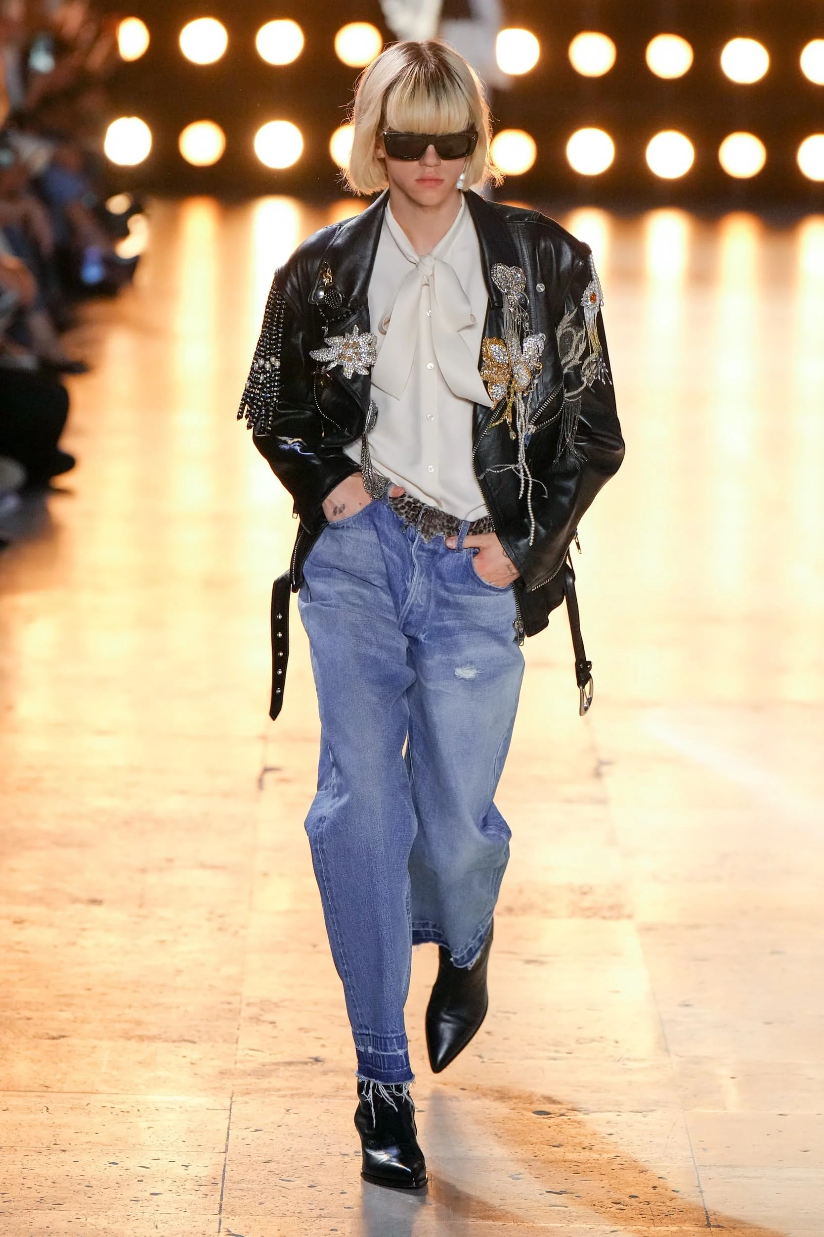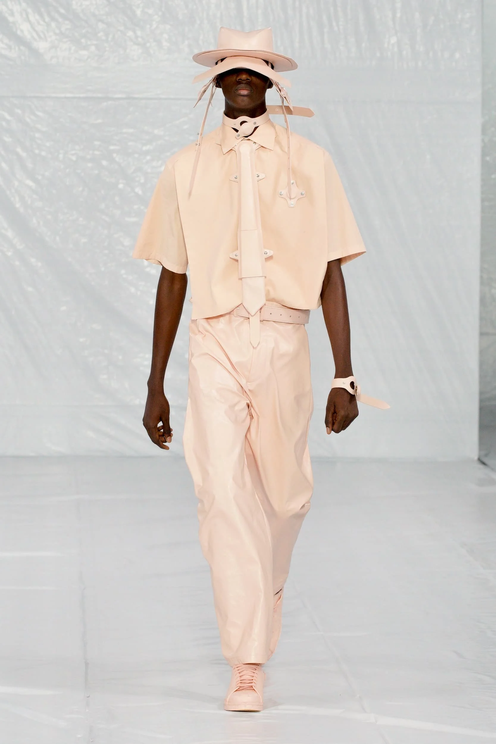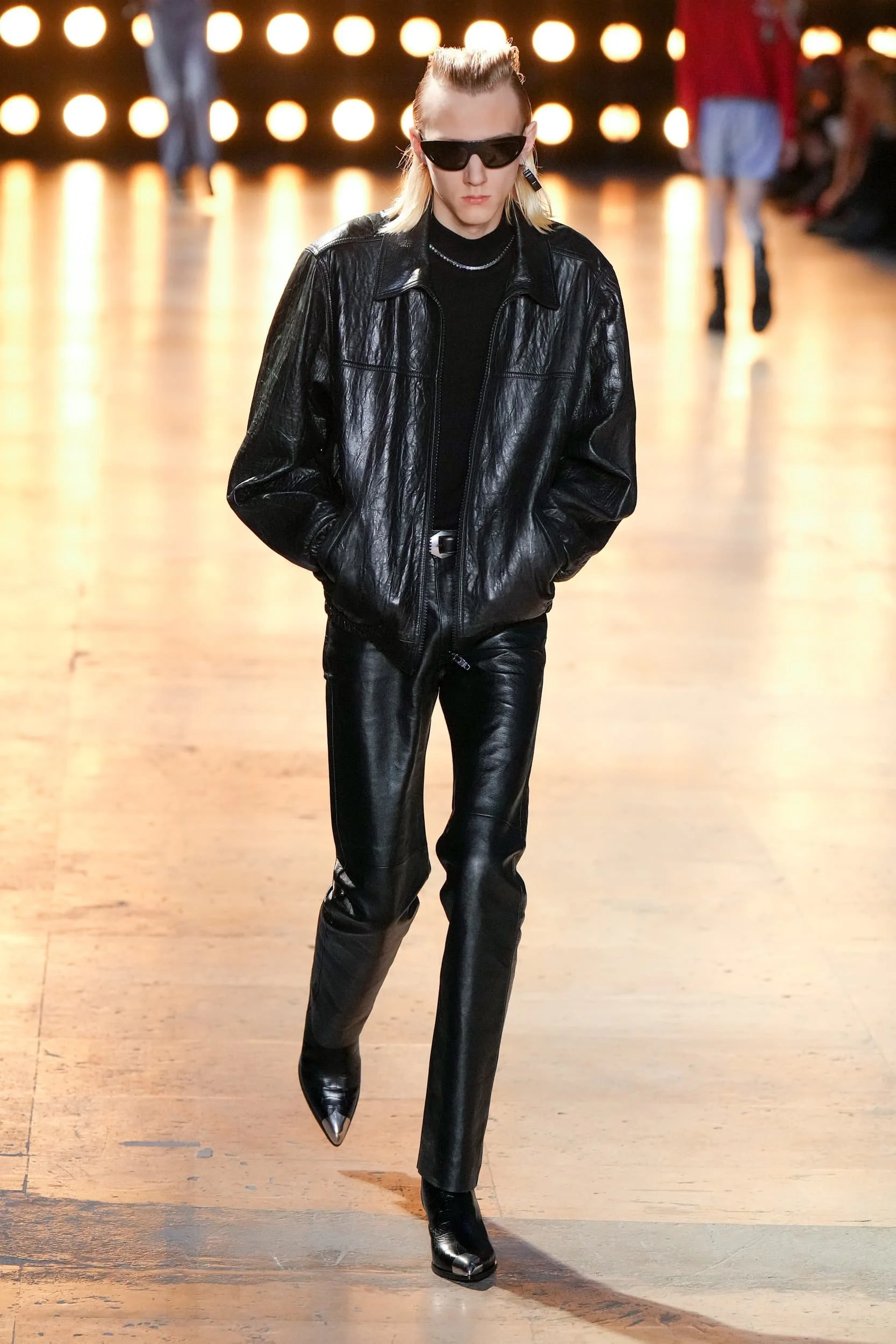 가죽은 여름에 예상치 못한 반전이었다. 특히 지금 여름을 알리는 지구의 기온이 치솟고 있어, 더더욱 의문이 들지도 모른다. 하지만 소비자들이 그들이 투자할 것을 찾고있는 지금, 가죽은 꽤나 안전한 베팅이다. 록, 펑크, 웨스턴의 영향을 받은 블랙 온 블랙 스타일은 런웨이 후 내려갔지만, 진짜 주목받은 건 가죽이 봄처럼 변신한 컬러업 버전에 있었다. 아미리에서 세이지 그린 반바지가 보였고, 마린 세르에서 패치워크 뉴트럴이 매치 세트에 등장했다. 80년대 스타일이 돌아오면서 모스키노, 셀린느, JW 앤더슨에서 밝은 빨간색과 파란색의 가죽 스키니 팬츠와 트러커가 큰 인기를 끌었다.