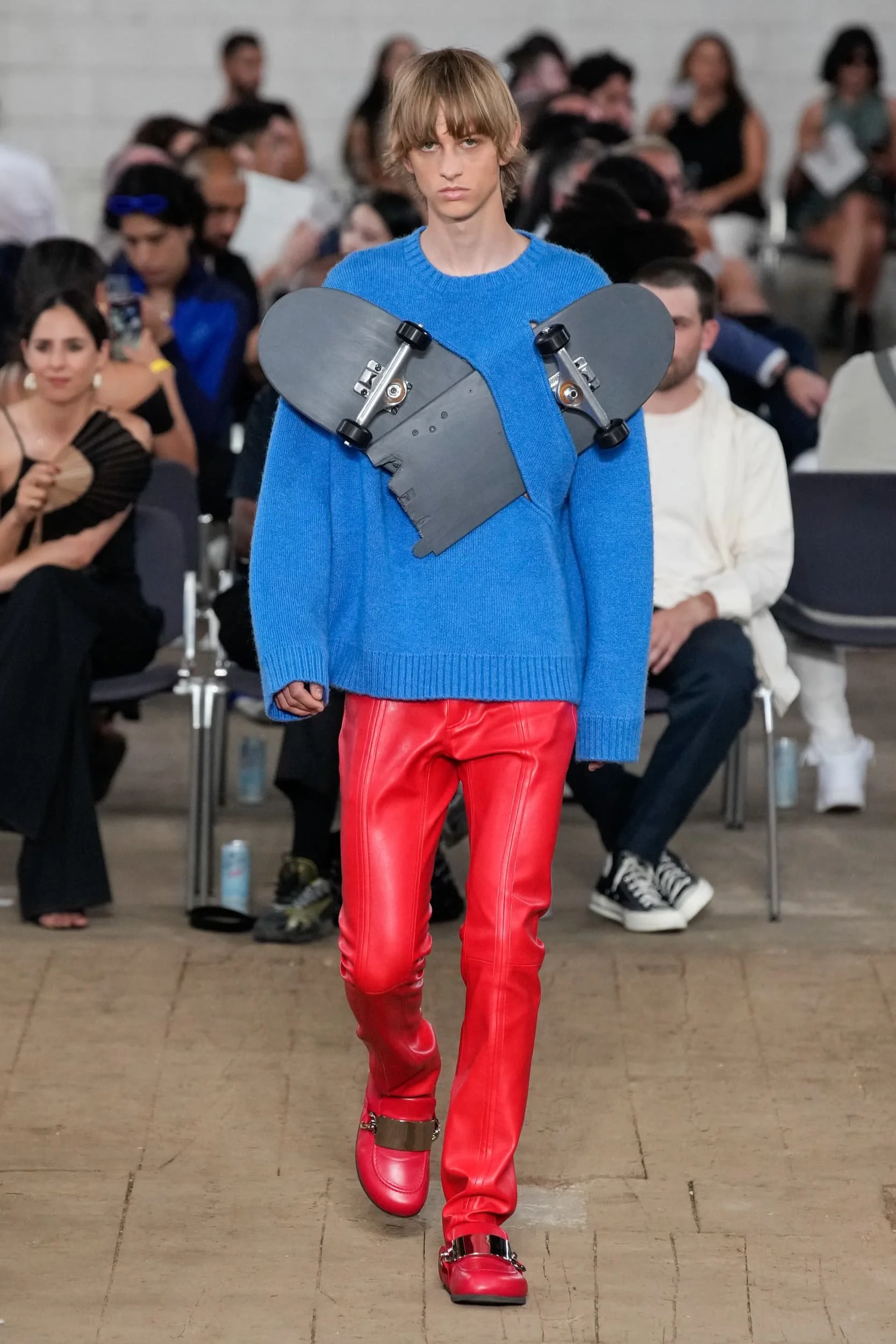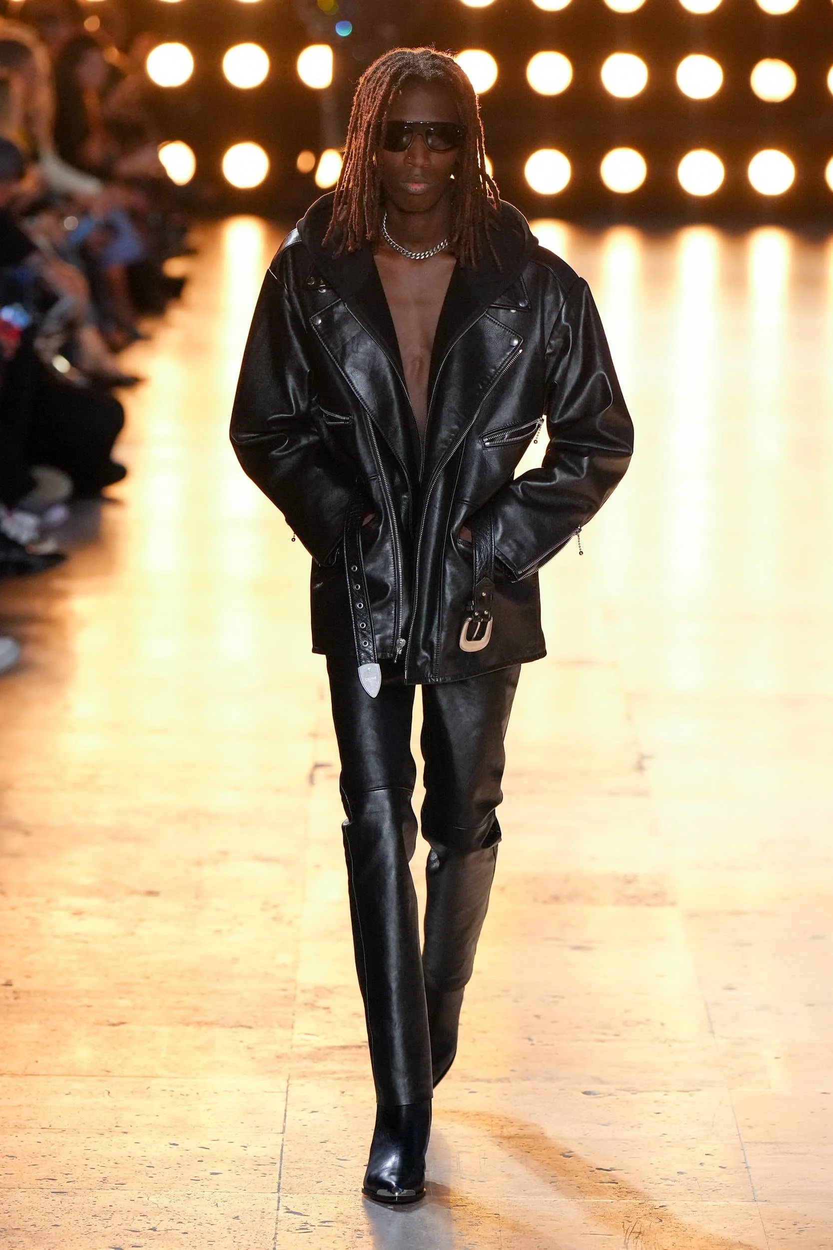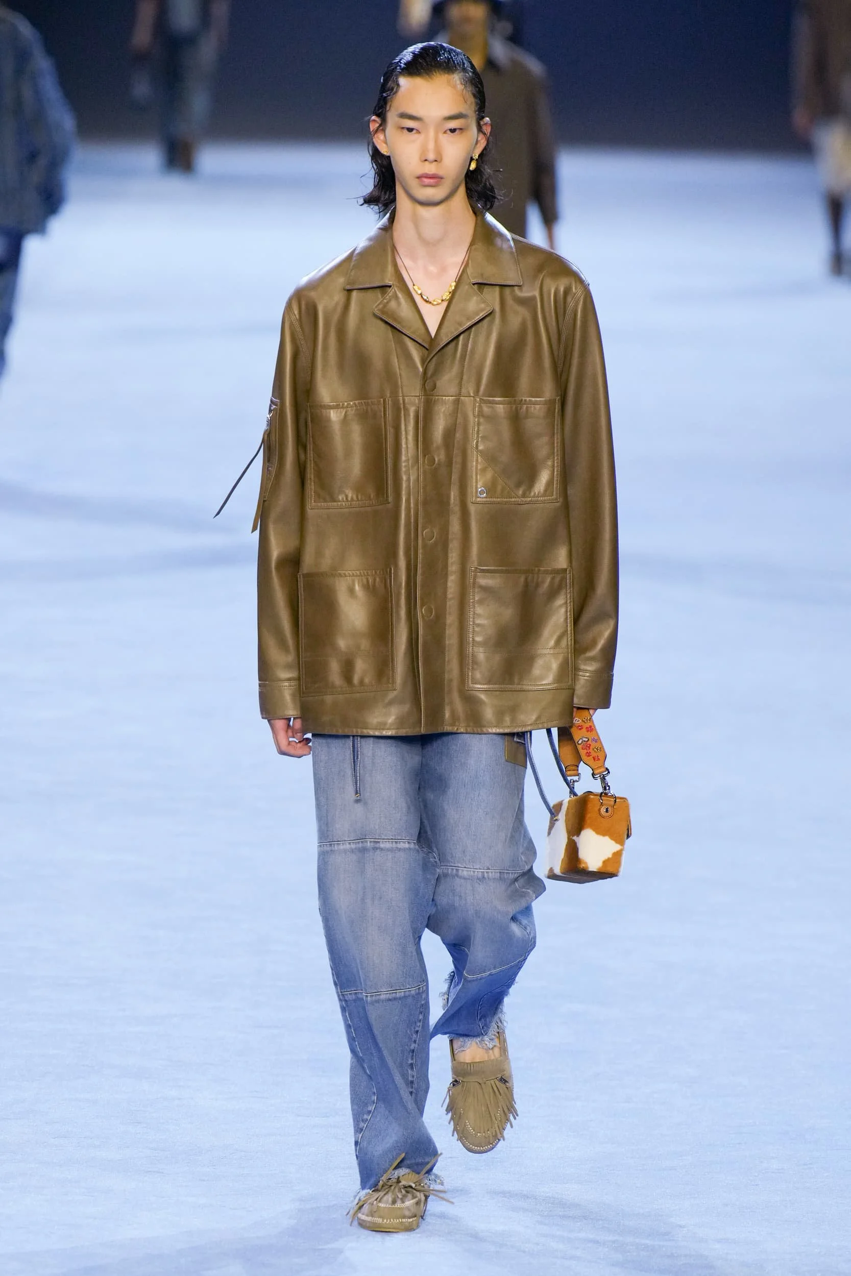 가죽은 여름에 예상치 못한 반전이었다. 특히 지금 여름을 알리는 지구의 기온이 치솟고 있어, 더더욱 의문이 들지도 모른다. 하지만 소비자들이 그들이 투자할 것을 찾고있는 지금, 가죽은 꽤나 안전한 베팅이다. 록, 펑크, 웨스턴의 영향을 받은 블랙 온 블랙 스타일은 런웨이 후 내려갔지만, 진짜 주목받은 건 가죽이 봄처럼 변신한 컬러업 버전에 있었다. 아미리에서 세이지 그린 반바지가 보였고, 마린 세르에서 패치워크 뉴트럴이 매치 세트에 등장했다. 80년대 스타일이 돌아오면서 모스키노, 셀린느, JW 앤더슨에서 밝은 빨간색과 파란색의 가죽 스키니 팬츠와 트러커가 큰 인기를 끌었다.