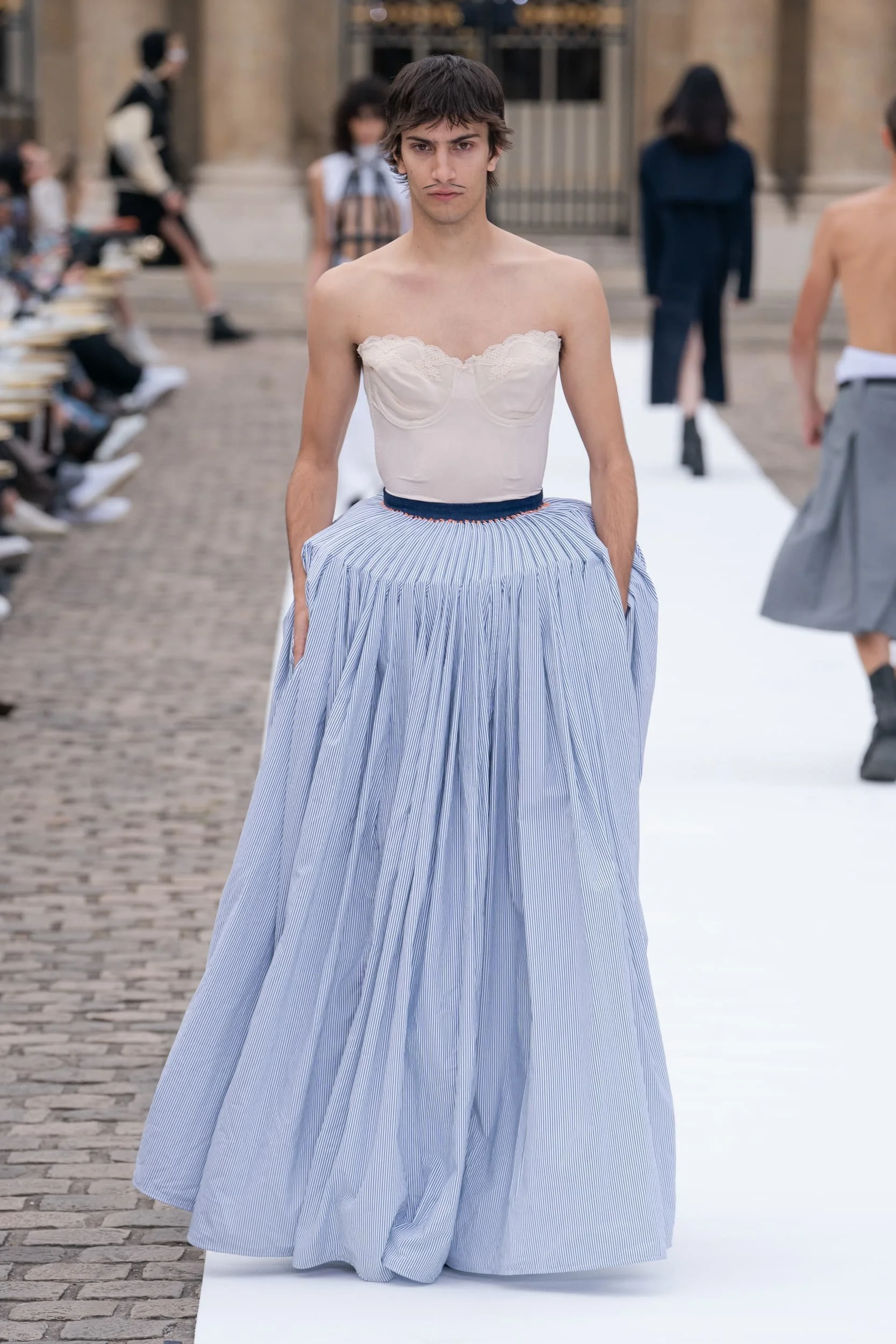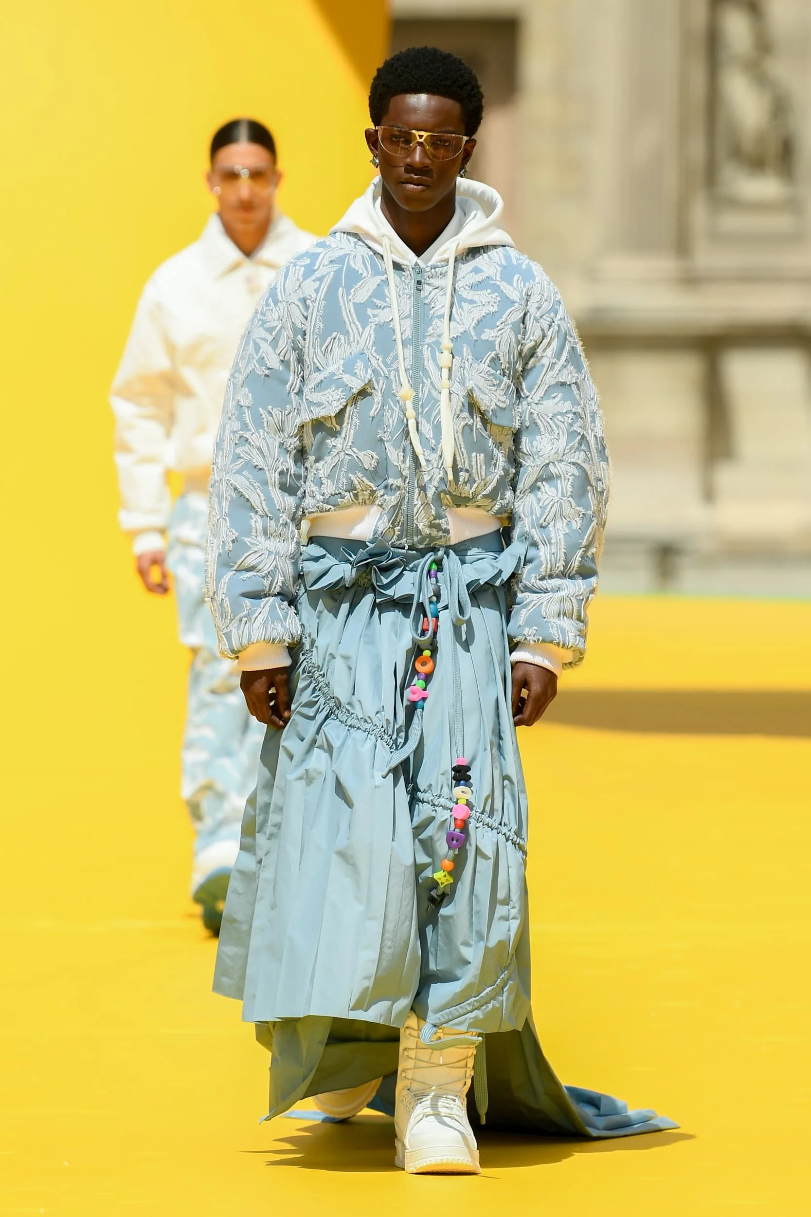 선로 사이에 야생화가 자라는 에뛰드 폐철도는 특히 상징적이었으며, 이상적이지 않은 환경에서도 업종의 지속적인 복귀를 승화적으로 암시했다. 그리고 JW 앤더슨은 로에베의 Paula Ulargui Escalona와 협력하여 최종적으로 하나가 될 의류에 '작물'이 어떻게 재현될 수 있는지를 시연했다. 자연과 함께 다시 킴 존스 디올 남성 쇼는 노르망디 그랜빌에 있는 크리스찬 디올의 복제 정원과 예술가 던컨 그랜츠 찰스턴 팜하우스가 합쳐진 곳에서 열렸다. 모델들은 존의 실용주의적인 레이어링의 부드러움과 완벽하게 맞물린 경작된 꽃밭을 지나 해안의 나들이, 삼림 탐험, 공원에서의 간단한 소풍 등에 적합한 미니어처 기술 액세서리로 내려갔다.